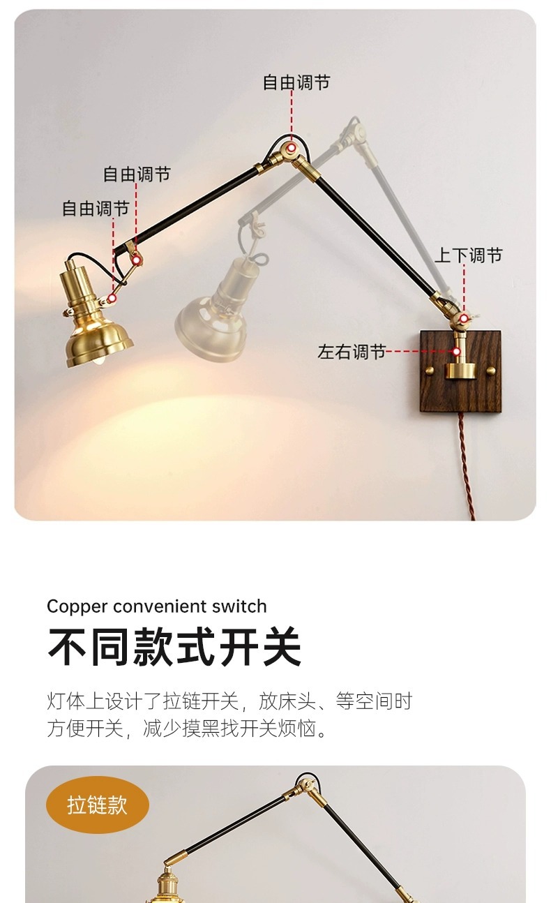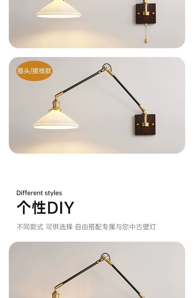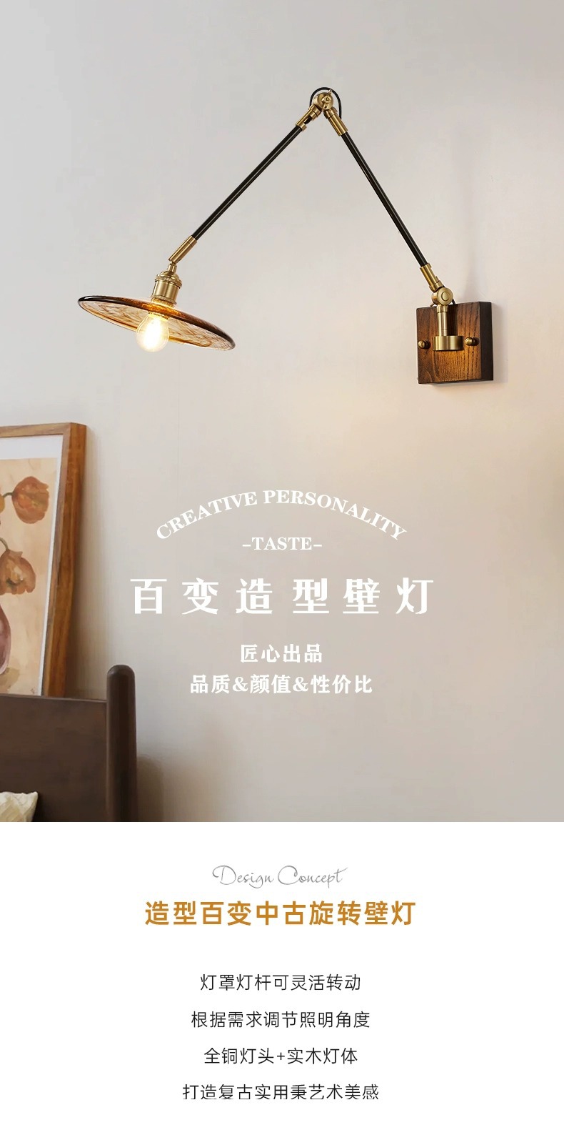 레트로 침대 옆 벽 램프, 중세 다기능 범용 산업 스타일 벽 램프, 거실, 침실, 커피 숍, 케이블 분위기 램프