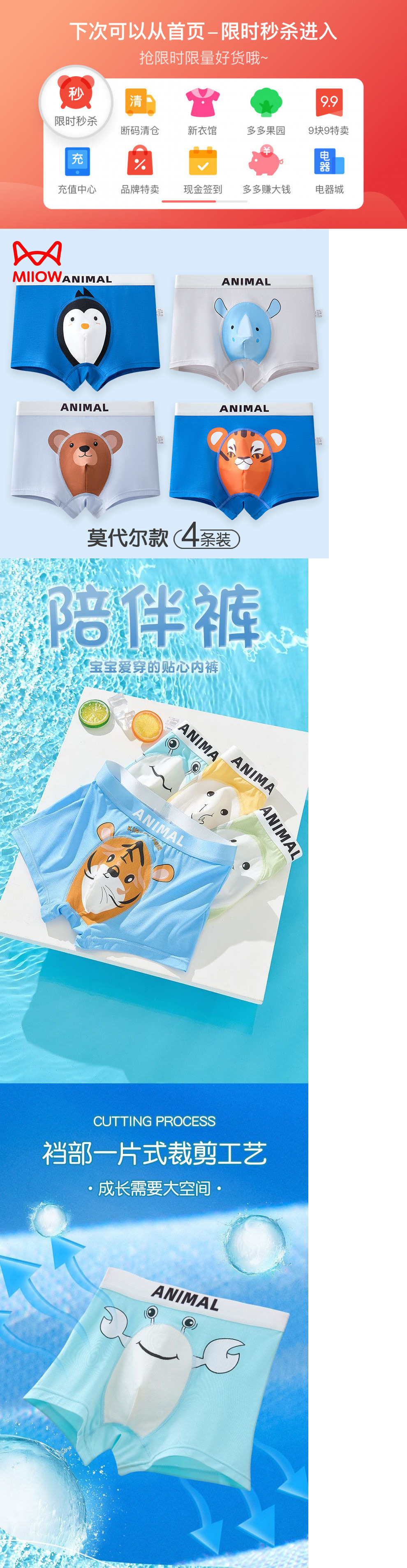 모달 남아 속옷, 얇은 아동 속옷, 통기성 중대형 아동 사각팬티, 어린 남아 사각팬티스토어 가기