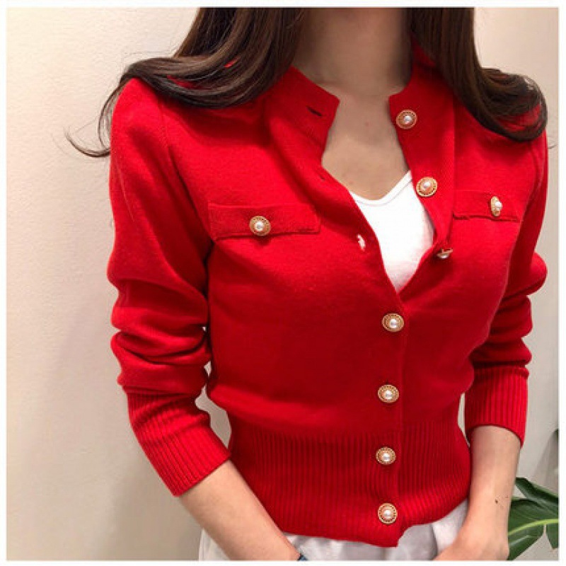 타이트 니트 카디건 여성 짧은 2025 슬림 한국 스타일 봄, 가을 새로운 스웨터 복고풍 긴팔 작은 코트 탑스토어 가기