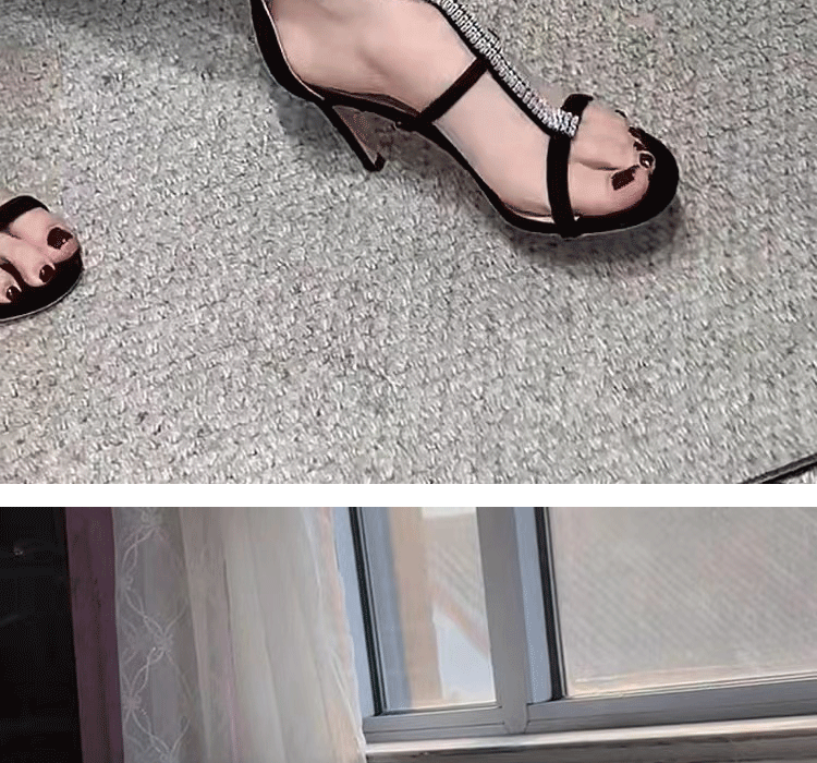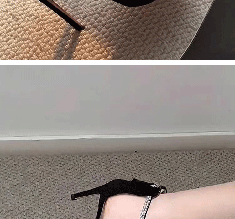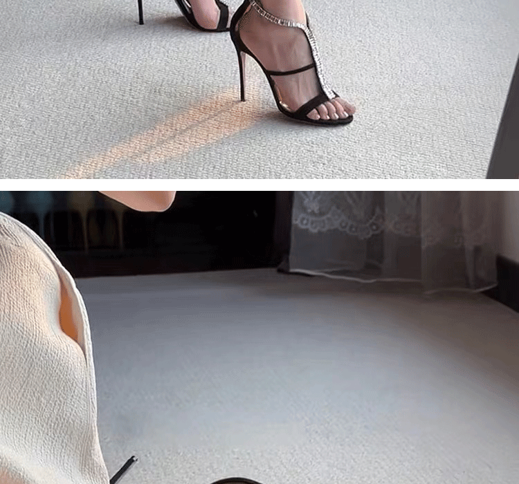 여성을위한 라인 석 체인 샌들 여성을위한 프랑스 스타일의 새로운 2025 여름 오픈 발가락 샌들 세련된 스틸레토 지퍼 하이힐스토어 가기