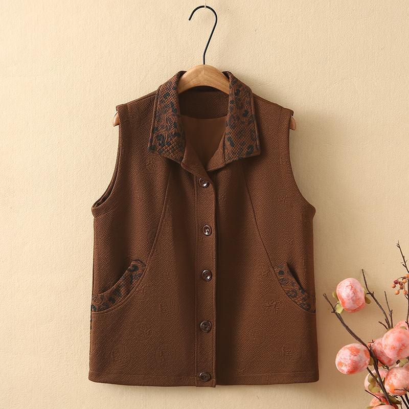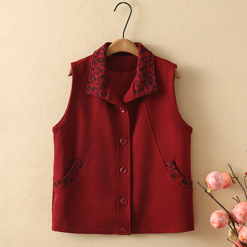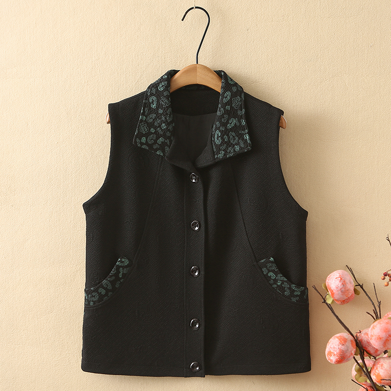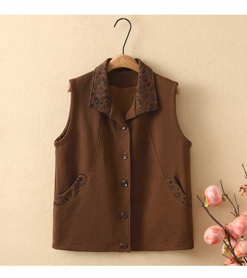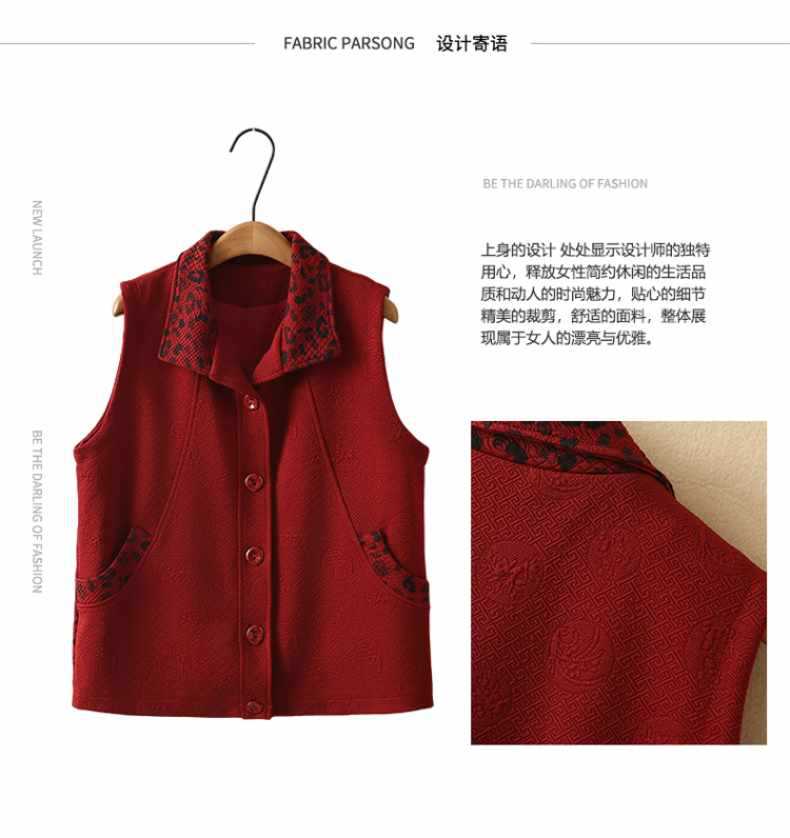 중년 및 노인 여성 조끼 봄과 가을 새로운 노부인 조끼 느슨한 어머니와 할머니 여성용 자수 재킷