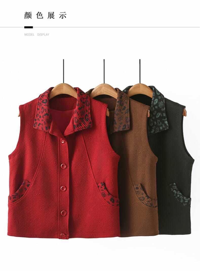 중년 및 노인 여성 조끼 봄과 가을 새로운 노부인 조끼 느슨한 어머니와 할머니 여성용 자수 재킷스토어 가기