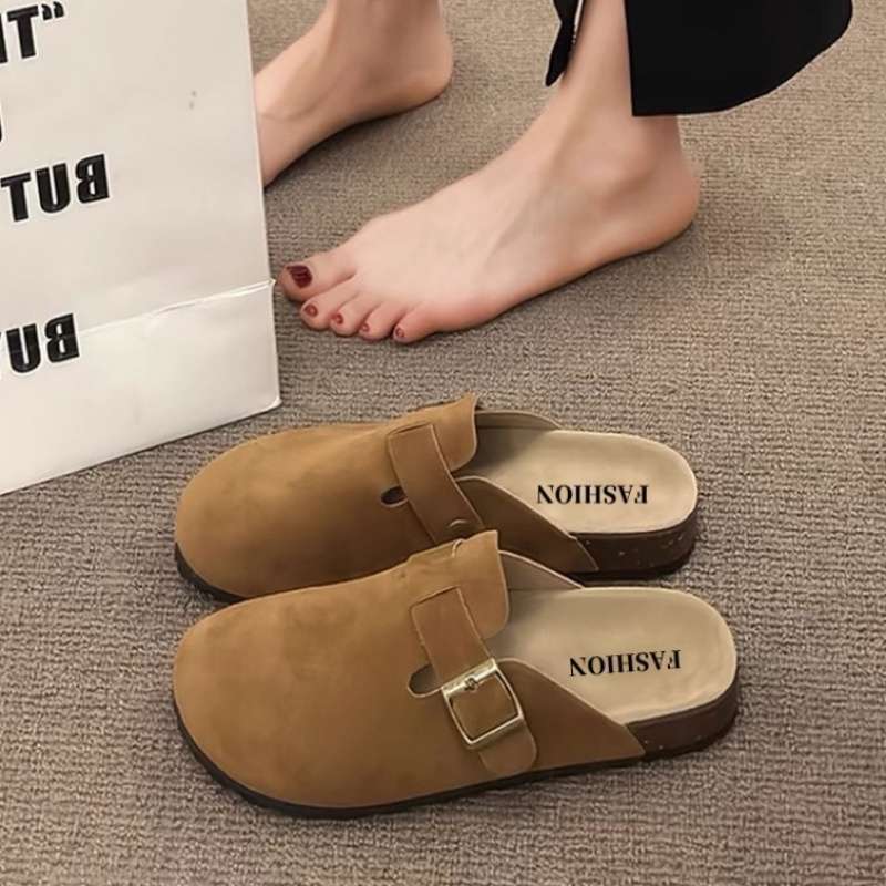 여성을 위한 부드럽고 편안한 Birkenstock 신발 2025 가을 겨울 외투용 다용도 플랫 바닥 패셔너블 홈 바오터우 하프 슬리퍼
