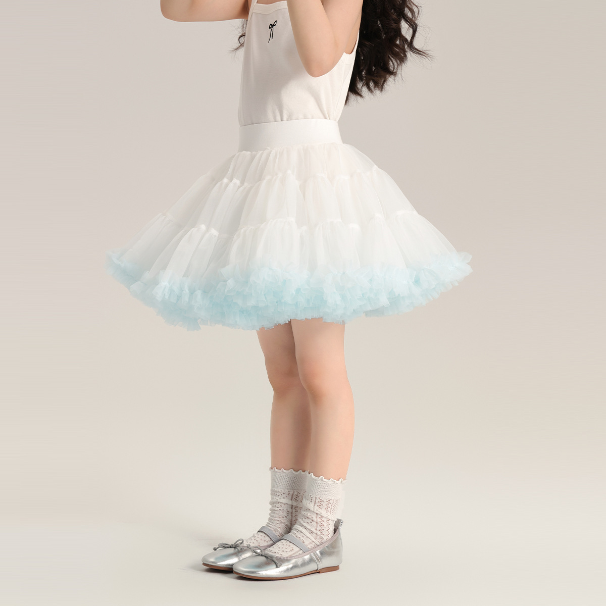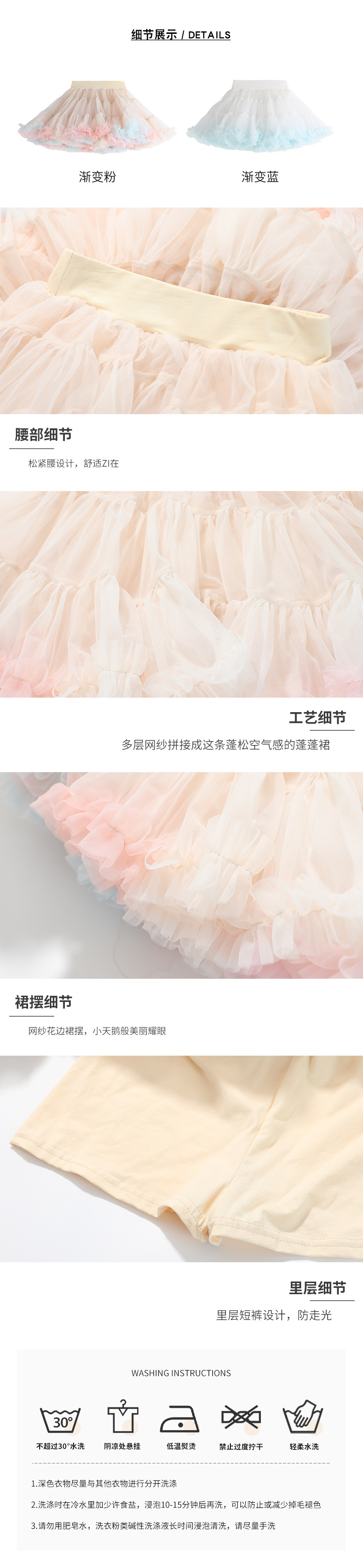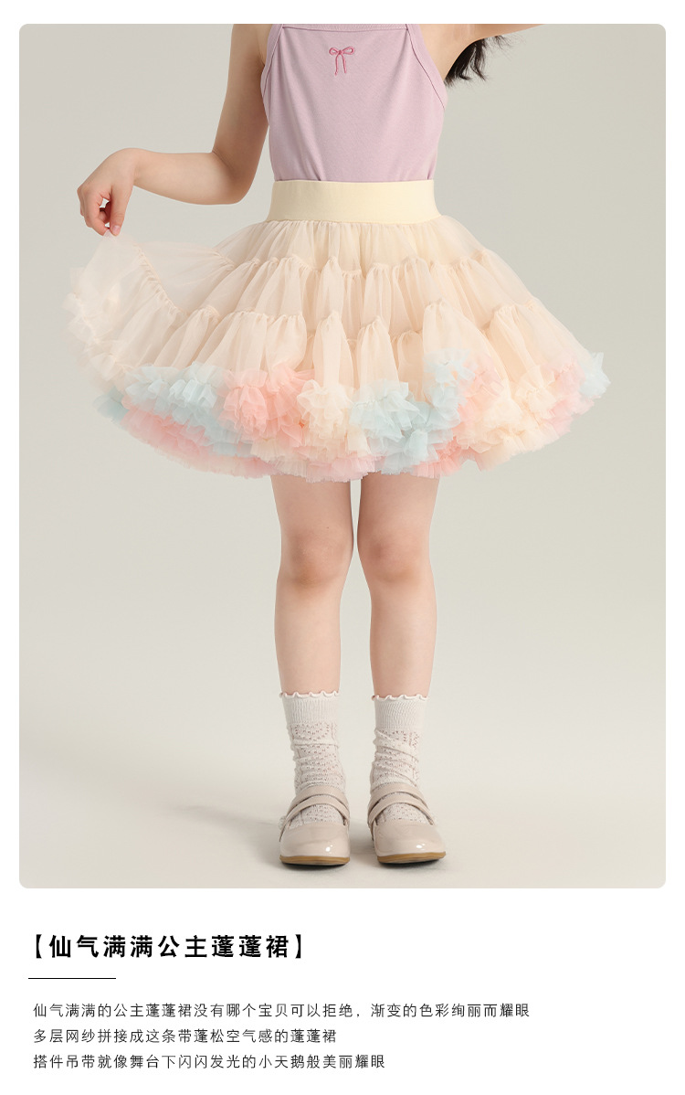 그라디언트 메쉬 소녀 스커트 2024 여름 새로운 달콤한 어린이 레이스 퍼프 스커트 귀여운 소녀 스커트스토어 가기