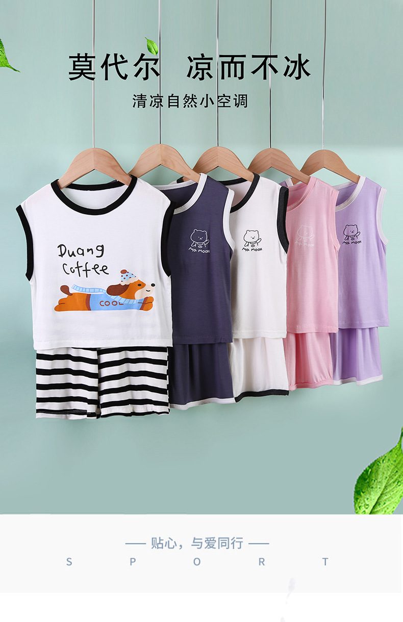 2025 여름 어린이 모달 와이드 숄더 조끼 반바지 홈웨어 세트