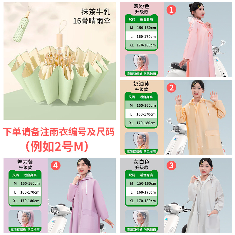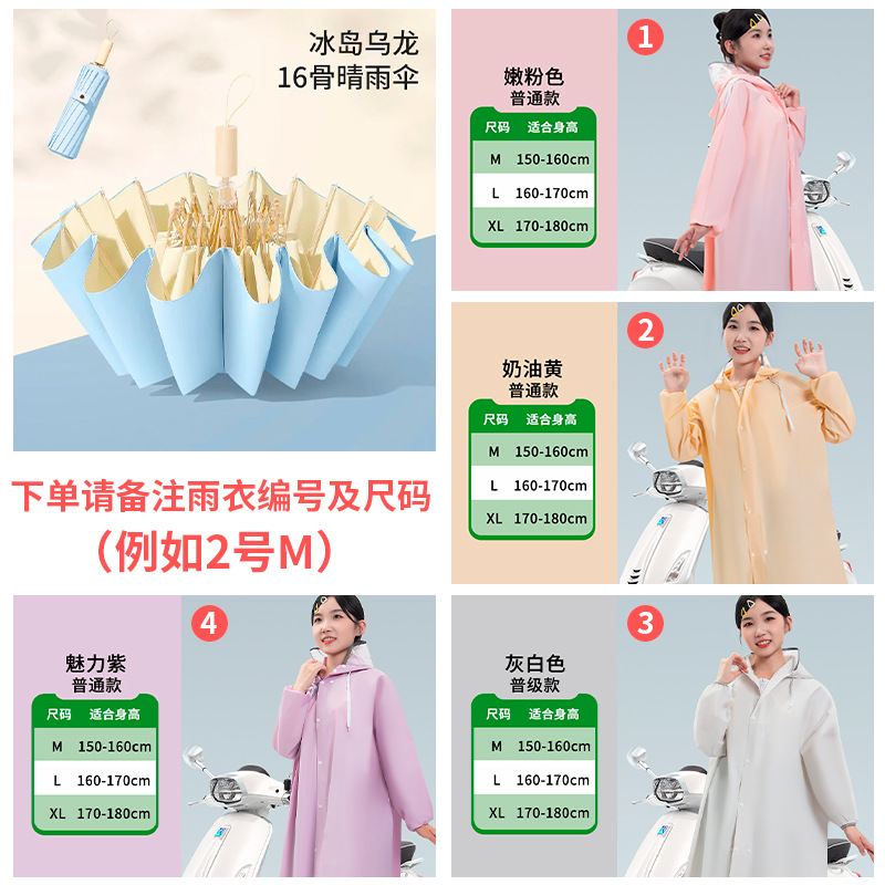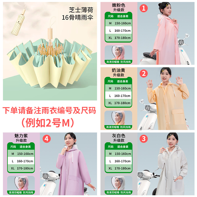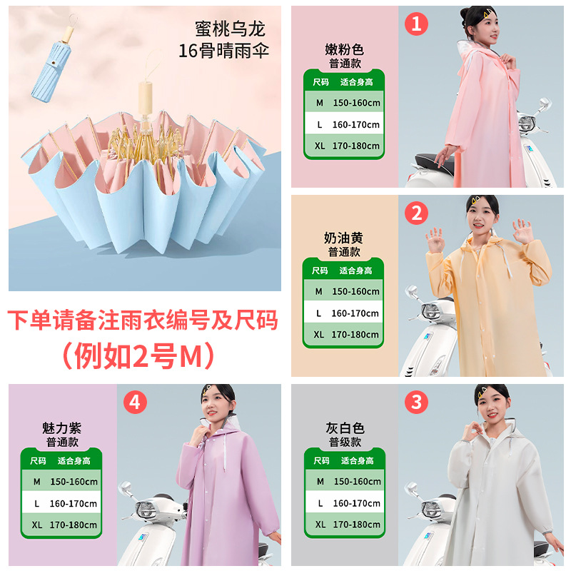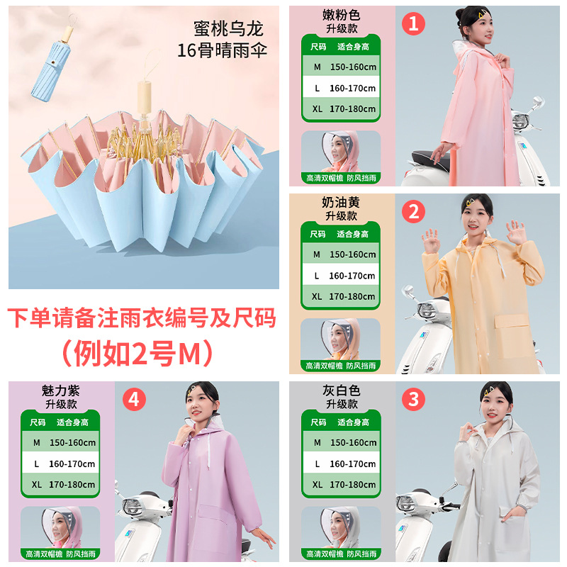 • [비 오는 날 파트너] 16본 복숭아 우롱 모조 나무 손잡이 + 더블 챙 비옷 [비고 잊지 마세요~]