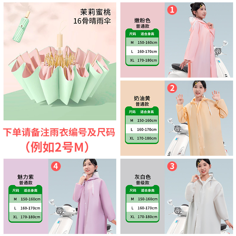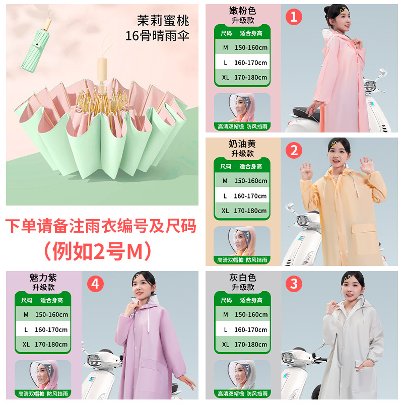 • [비 오는 날 파트너] 16본 자스민 복숭아 모조 나무 손잡이 + 더블 챙 비옷 [비고 잊지 마세요~]