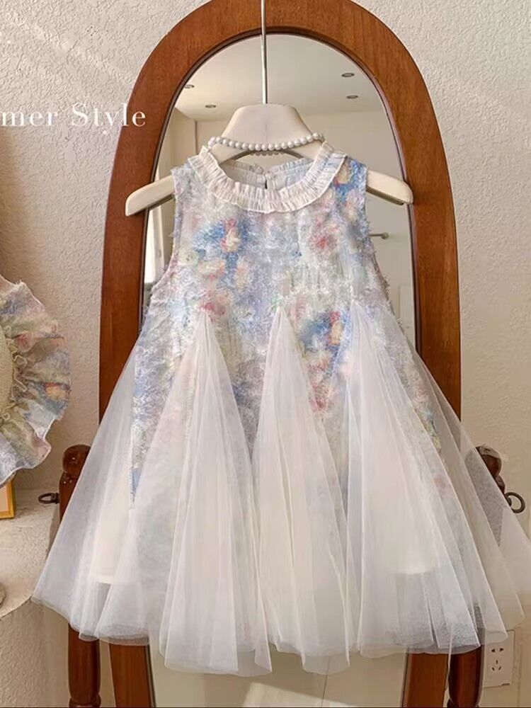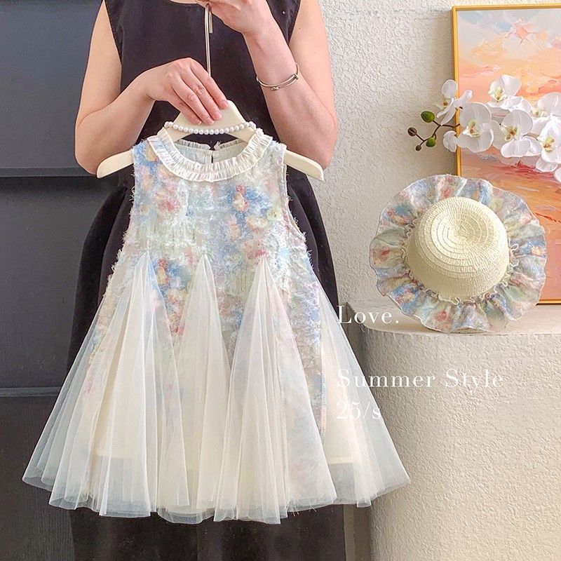 여자 새 드레스 2025 어린이 스타일 스커트 보우 메쉬 퍼프 스커트 조끼 공주 드레스 슈퍼 귀여운스토어 가기
