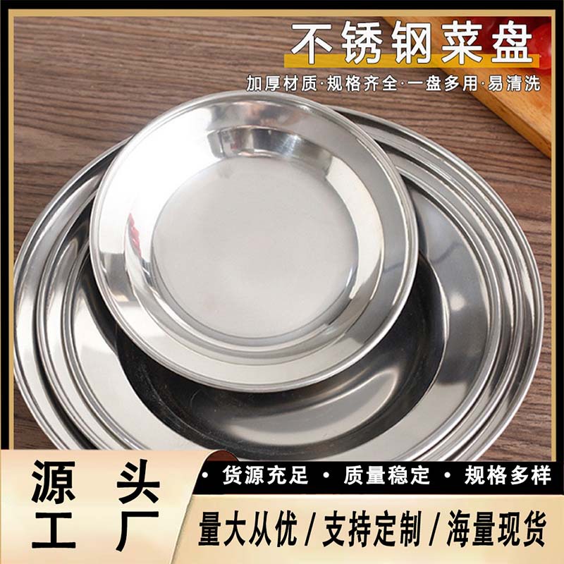 두꺼운 스테인레스 스틸 접시, 원형 접시, 만두 접시, 바베큐 접시, 레스토랑 호텔 생선 접시, 가정용 접시 접시, 바베큐 접시, 얕은 접시스토어 가기
