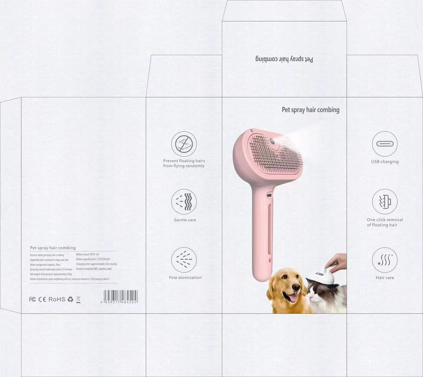 애완동물 스프레이 빗 전용 대외 무역, USB 충전식 개 빗, 고양이 털 제거 및 스프레이가 포함된 매듭 빗