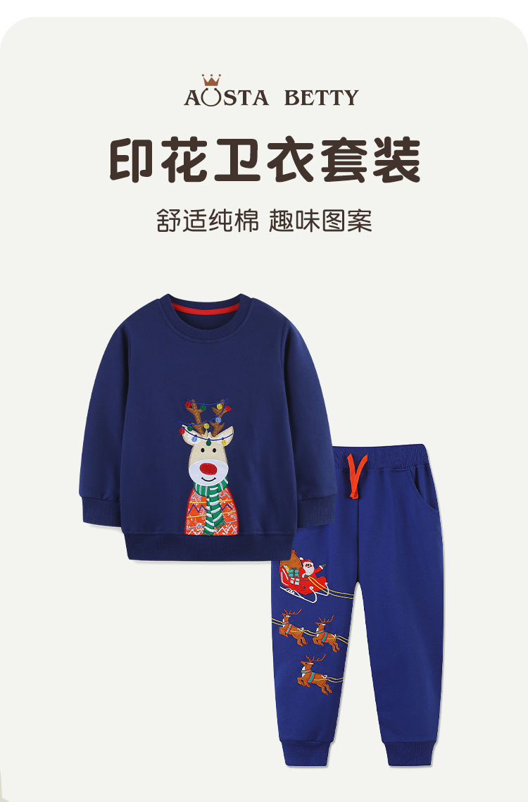가을 소년 정장 유럽과 미국 스타일의 크리스마스 엘크 수 놓은 어린이 긴팔 투피스 세트 패션 어린이 스포츠 바지스토어 가기