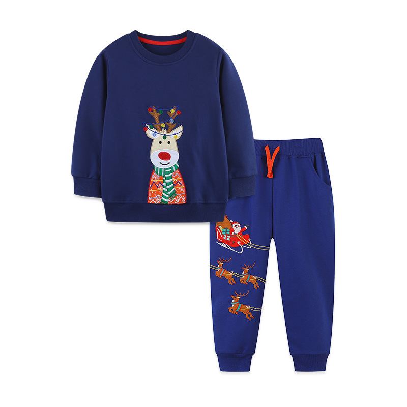 가을 소년 정장 유럽과 미국 스타일의 크리스마스 엘크 수 놓은 어린이 긴팔 투피스 세트 패션 어린이 스포츠 바지
