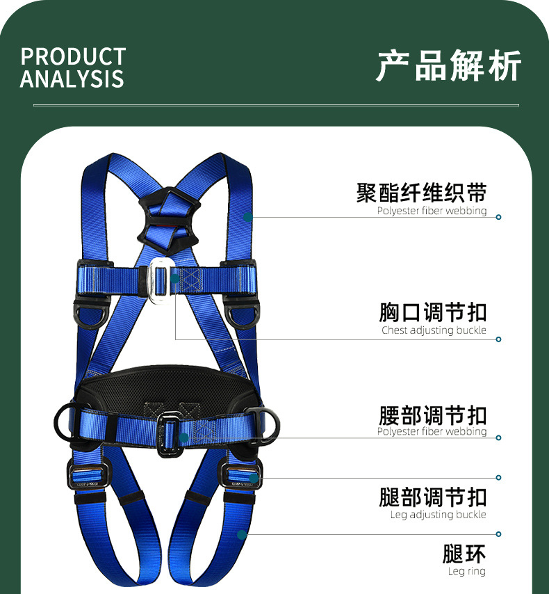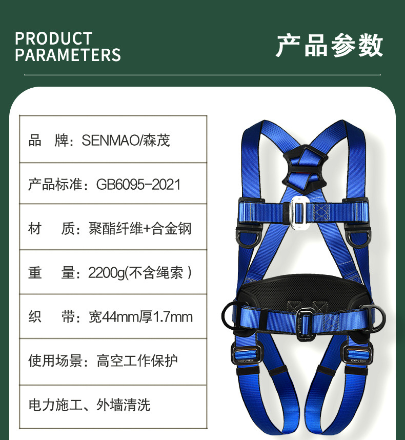 전신 안전벨트, 실외 추락 방지 고공 작업 로프 세트, 건설용 5점 내마모 안전벨트