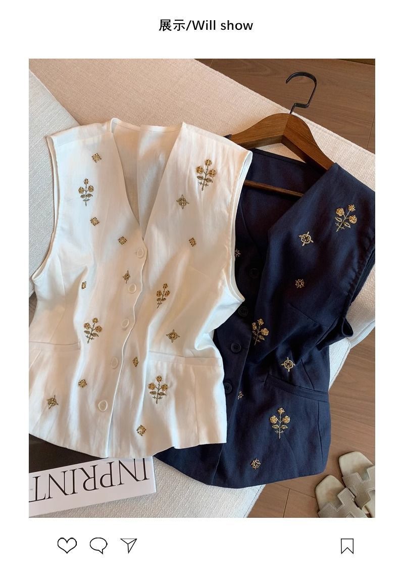 여성을위한 올드 머니 스타일 자수 민소매 탑 2025 여름 하이 엔드 기질 느슨하고 다재다능한 v 넥 패션 조끼스토어 가기