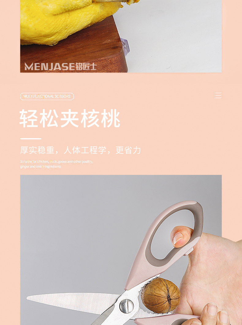 다기능 주방 가위, 가정용 닭뼈 가위, 대형 가위, 스테인레스 스틸 고기 가위, 자기 흡수식품, Hona스토어 가기