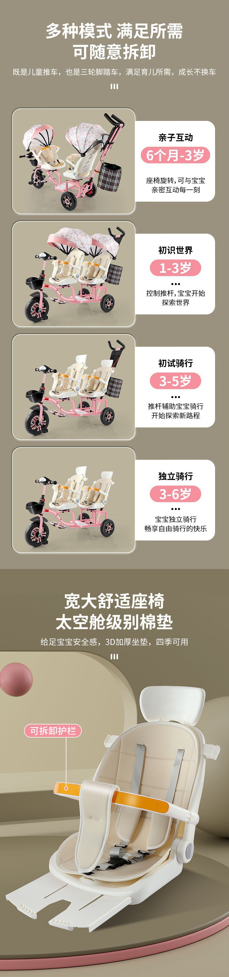 쌍둥이 유모차, 어린이용 세발자전거 유모차, 유아용 자전거, 2세 아기가 함께 탈 수 있는 유아용 자전거