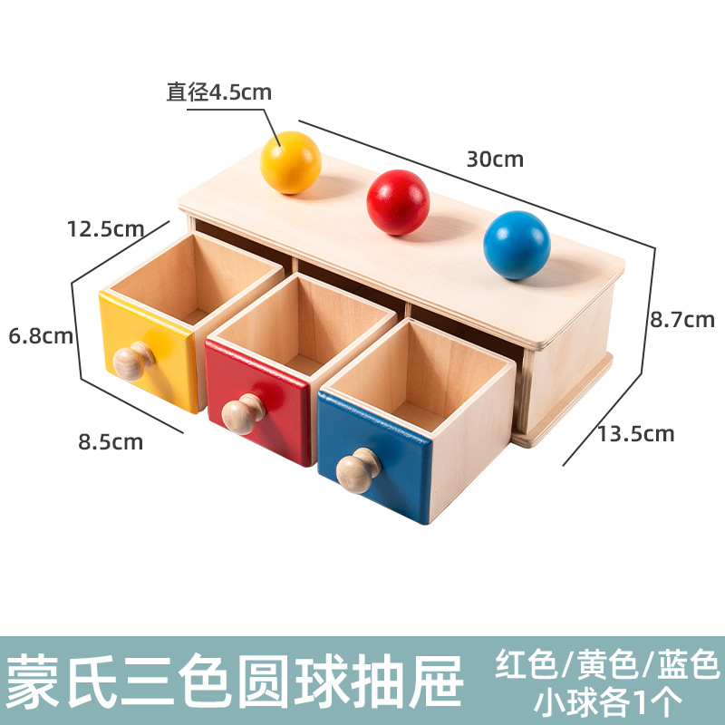 • 몬테소리 삼색 볼 서랍 [빨간색/노란색/파란색 볼 각 1개]