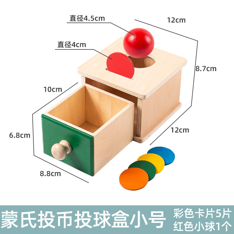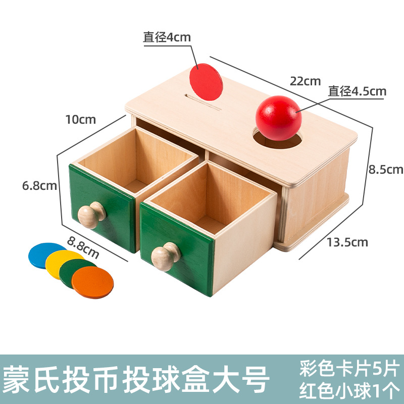 • 몬테소리 동전 투입구 볼박스-대형 [컬러디스크 5개, 작은 빨간 공 1개]
