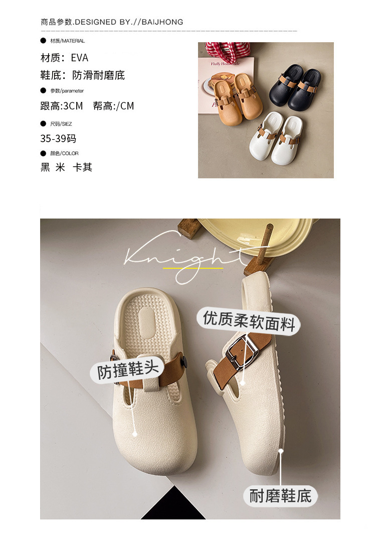 한국 복고풍 대형 헤드 플랫 슬리퍼 2024 새로운 슬립 온 발가락 반 샌들 여성용 부드러운 바닥 라운드 발가락 샌들스토어 가기