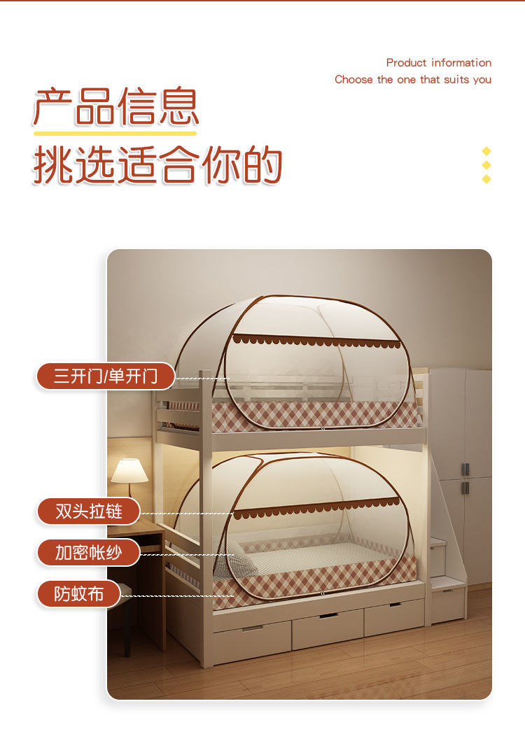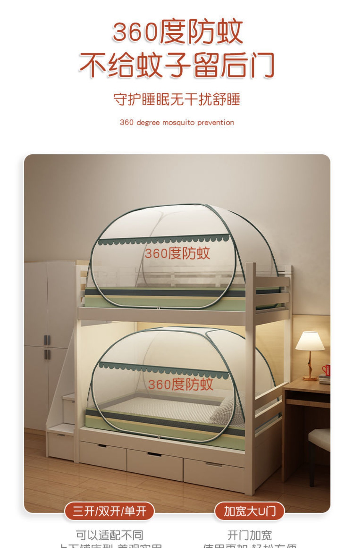 접이식 학생 기숙사 설치가 필요 없는 몽골리안 돔 모기장 U자형 어린이 싱글 침대 이층 침대 1.0m m스토어 가기