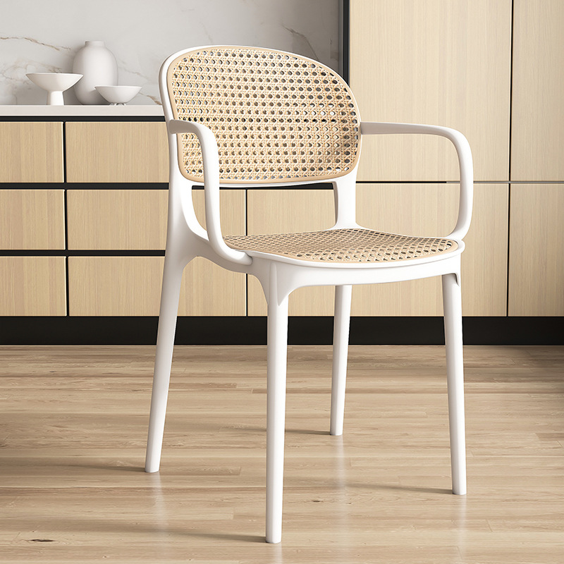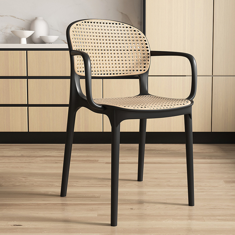 두꺼운 등받이가 있는 플라스틱 의자, 가정용 쌓을 수 있는 팔걸이 식당 의자, 북유럽 등나무로 짠 야외 음식 가판대 식탁 및 의자