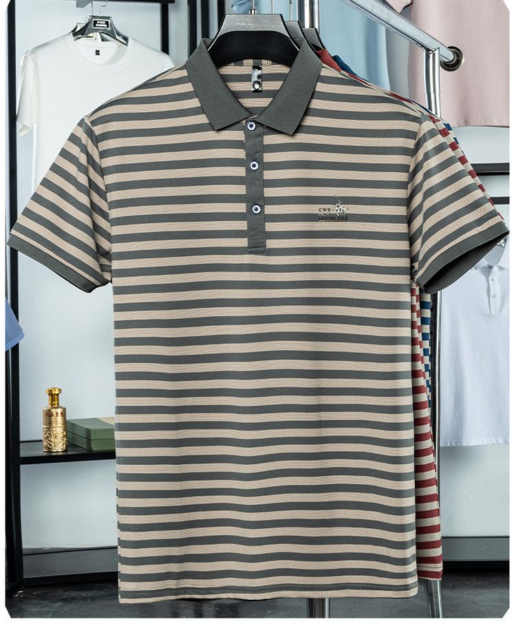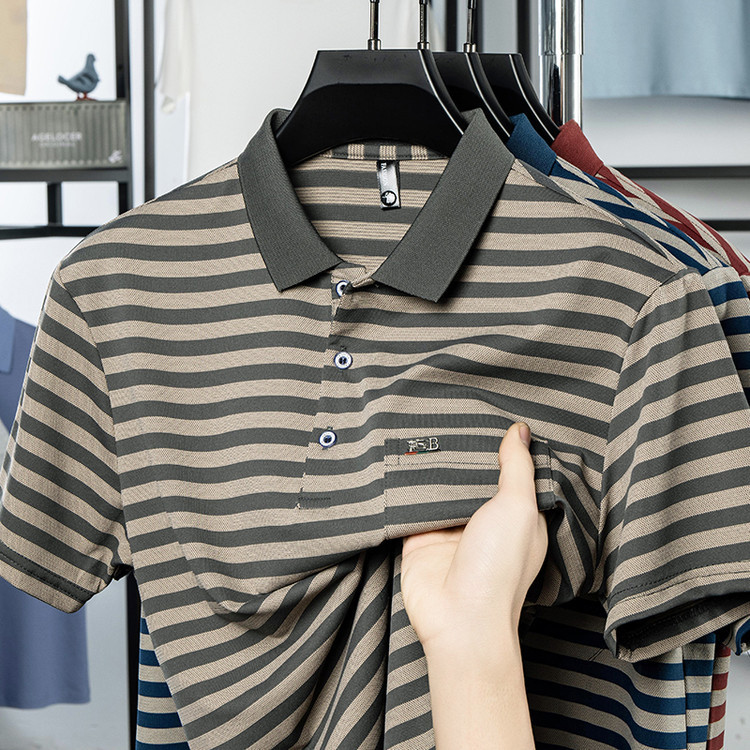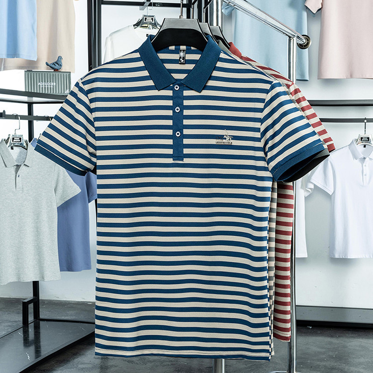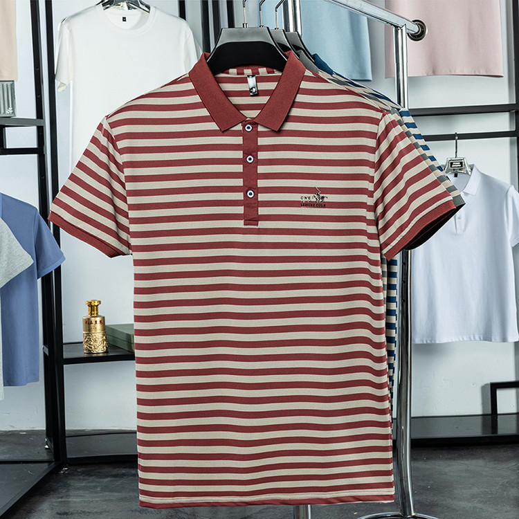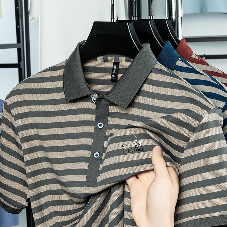남성용 크로스보더 인기 폴로 셔츠 여름 신작 가로 줄무늬 라펠 반팔 티셔츠 루즈 캐주얼 다용도 반팔 트렌디스토어 가기