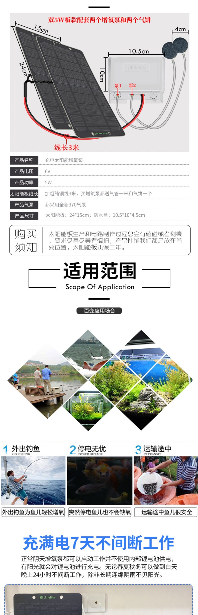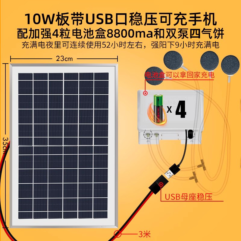 • 강력한 배터리 4개 휴대폰 충전 + 듀얼 5w 보드 + 펌프 2개 에어케이크 4개 연속 4일 동안 공기량 6배✓