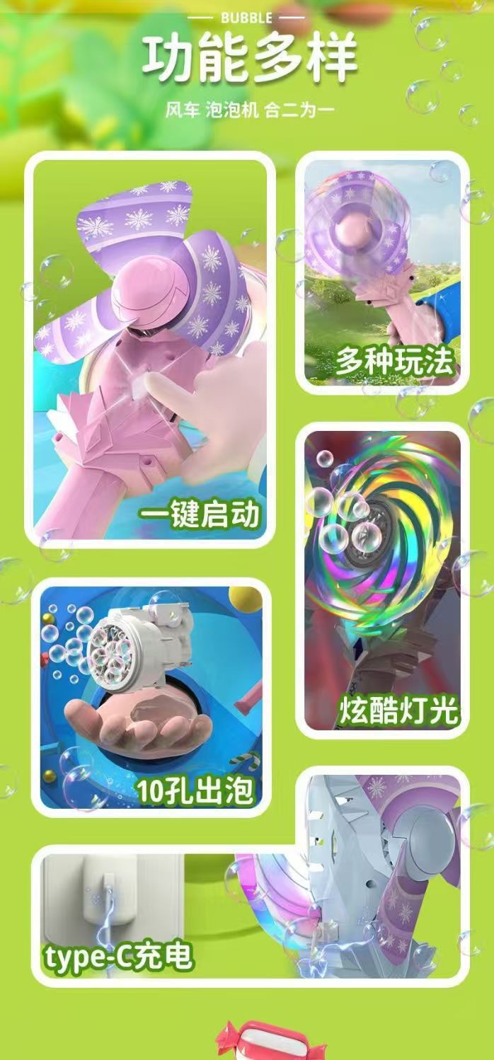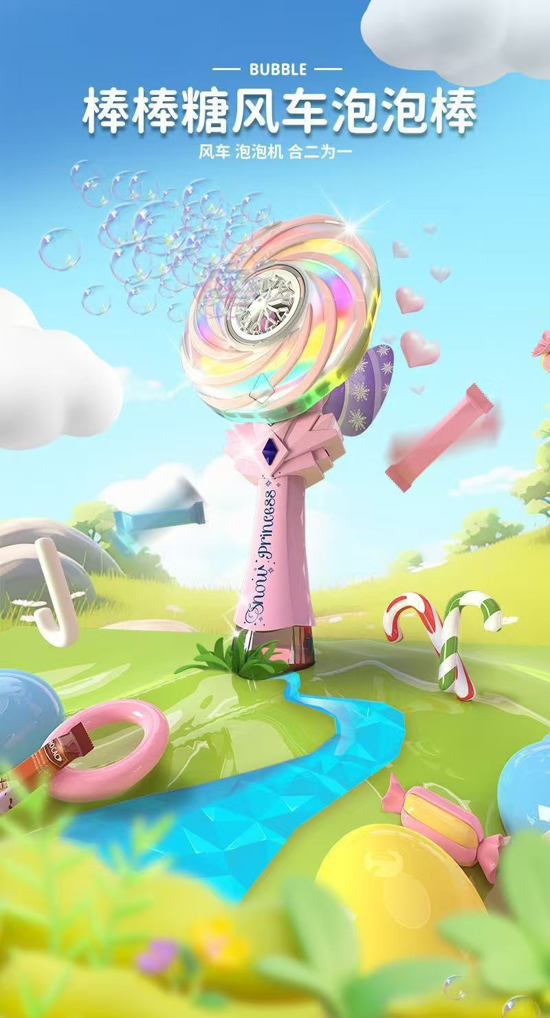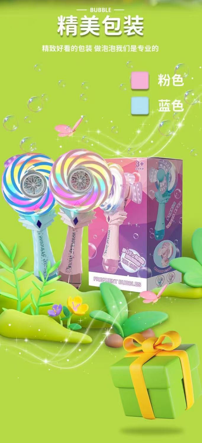 공주 스틱 버블 머신 마법의 요정 충전식 롤리팝 버블 건 어린이 장난감 풍차 버블 장난감 도매