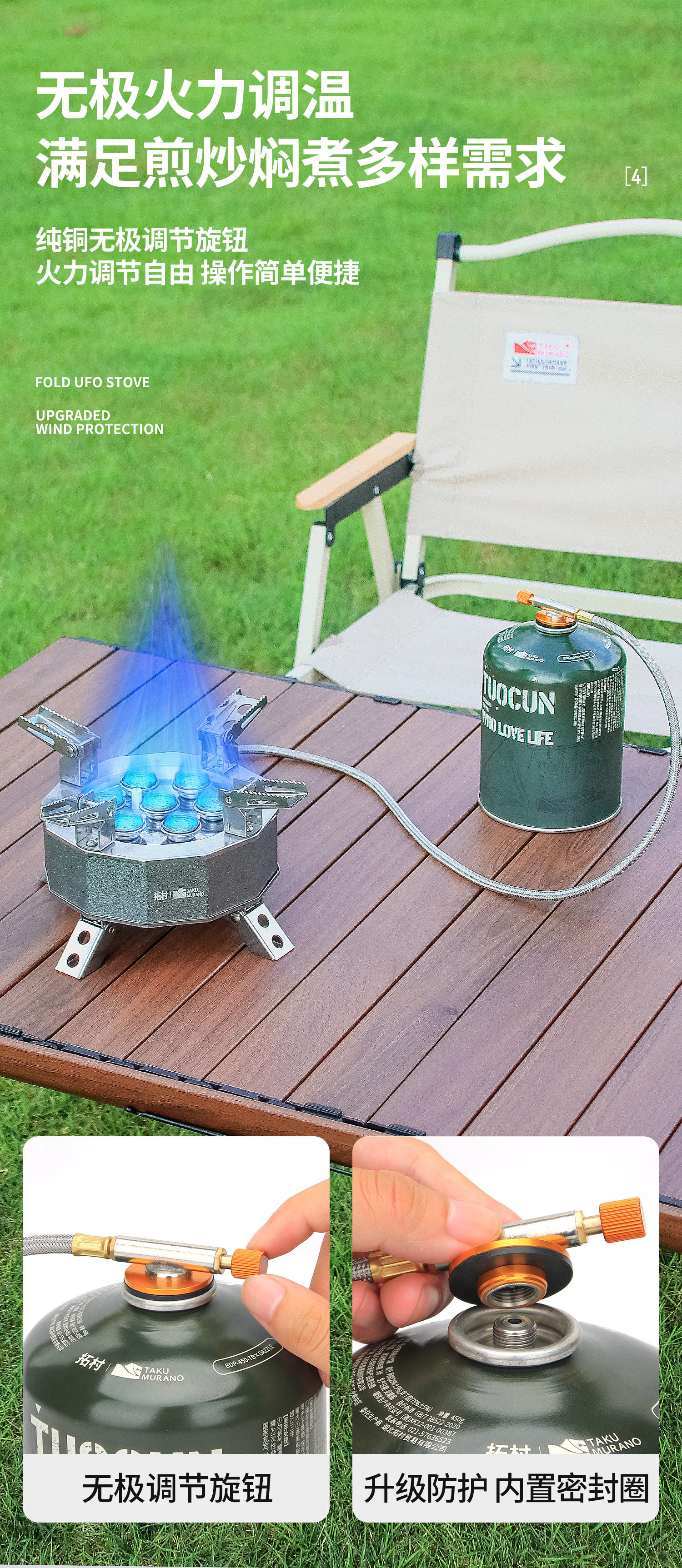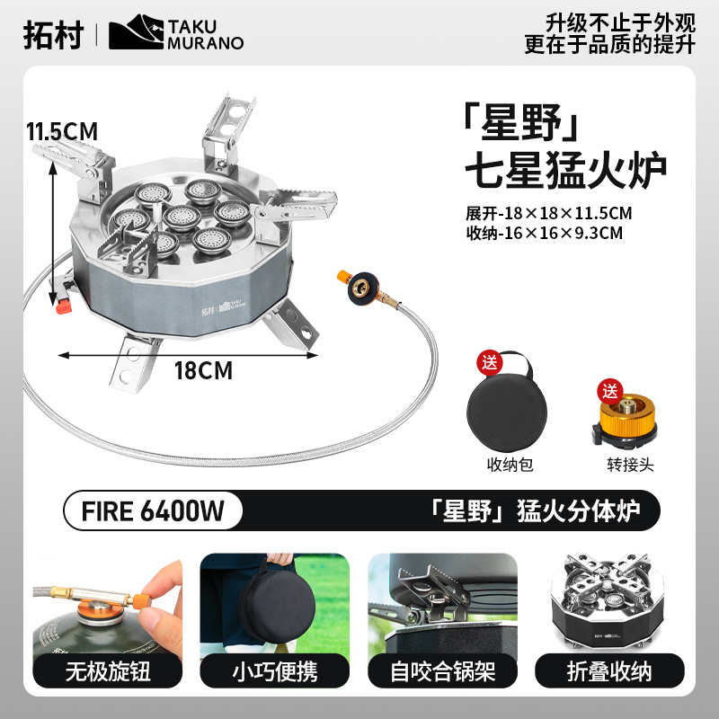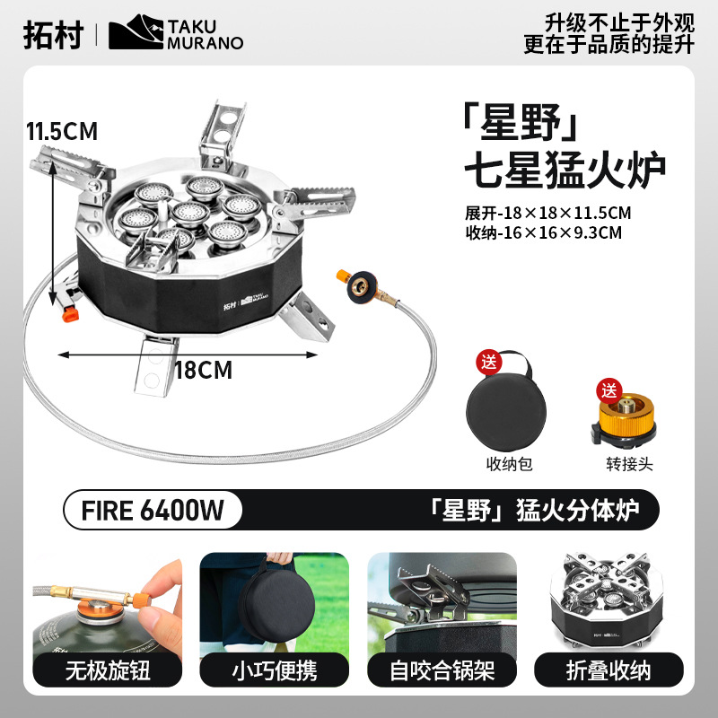 Douyin의 동일한 야외 피크닉 5성 스토브 휴대용 방풍 캠핑 스토브 6구 스토브 캠핑