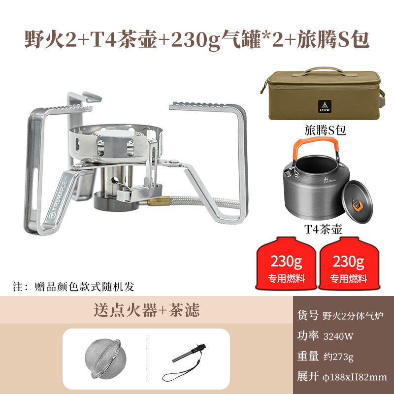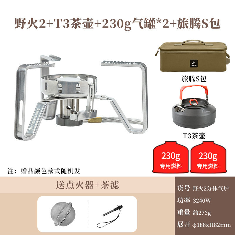 • Wildfire 2+T3 찻주전자+230g 가스*2+Lveteng S 가방, 무료 점화 장치+차 필터