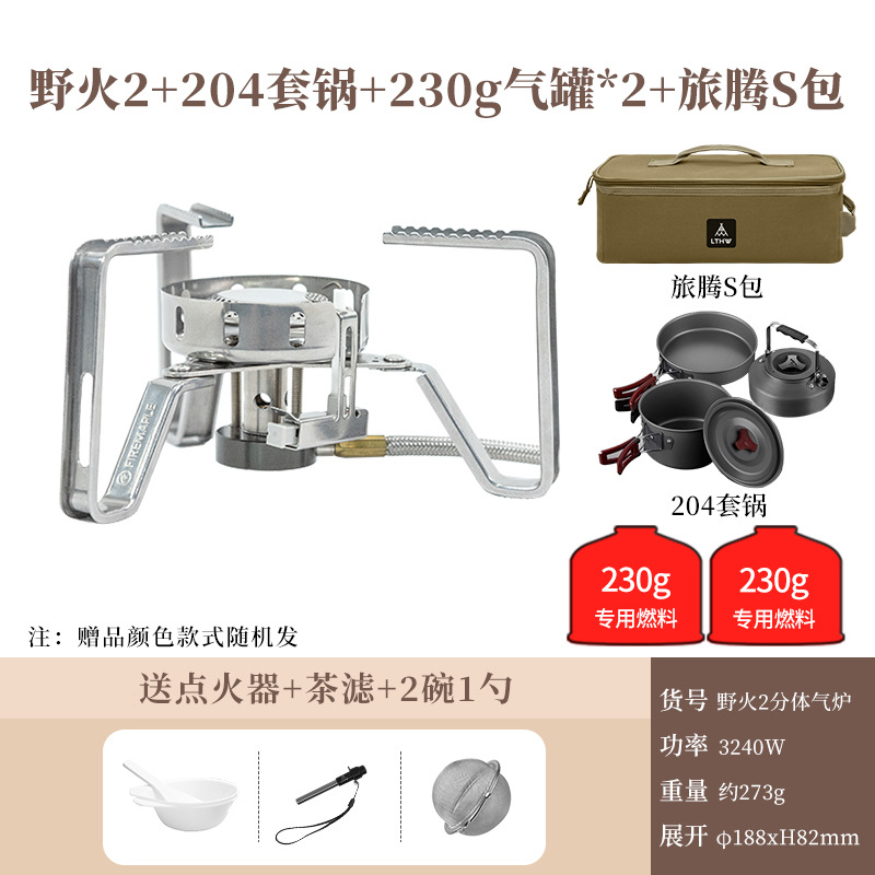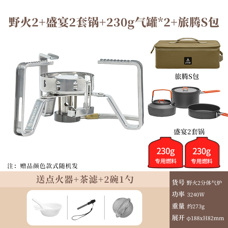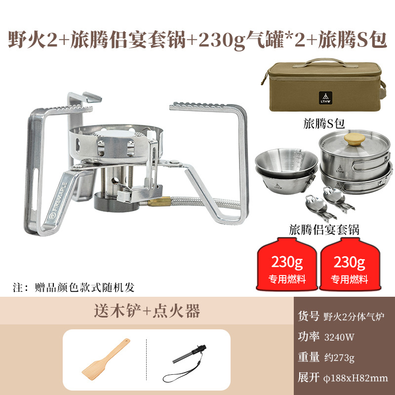 • Wildfire 2+Lv Teng Lv 연회 냄비 세트+가스 230g*2+Lv Teng S 가방, 무료 점화 장치+나무 삽