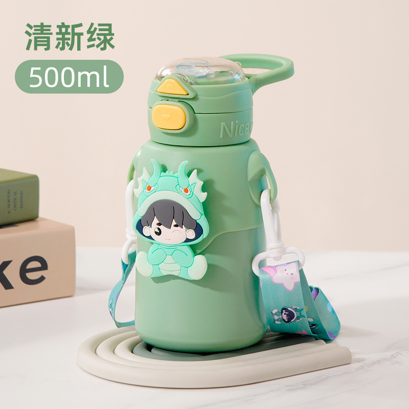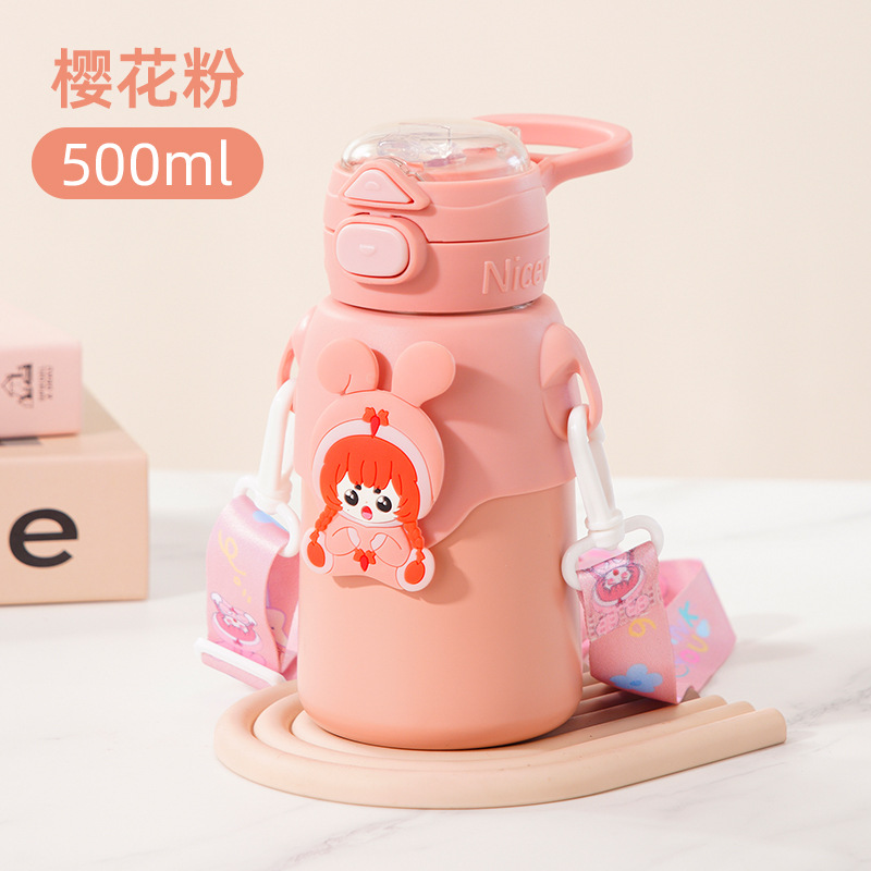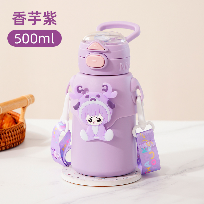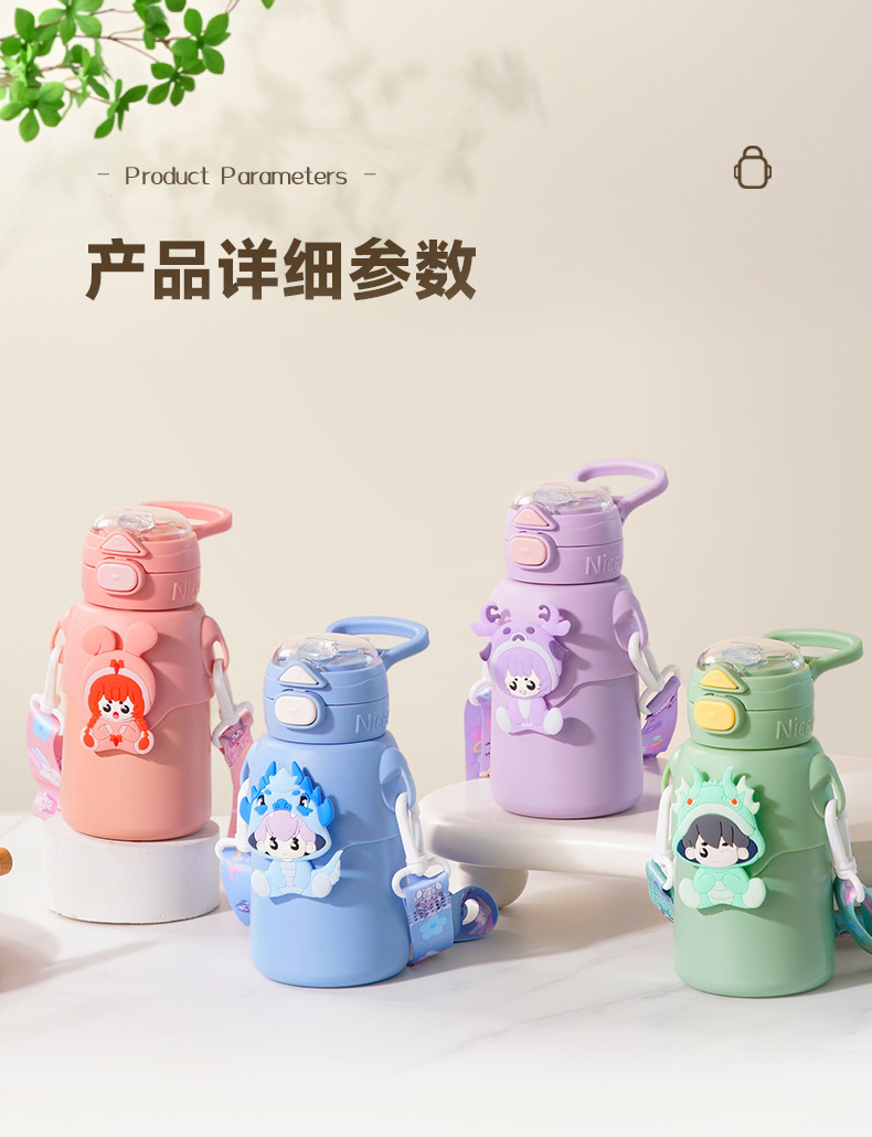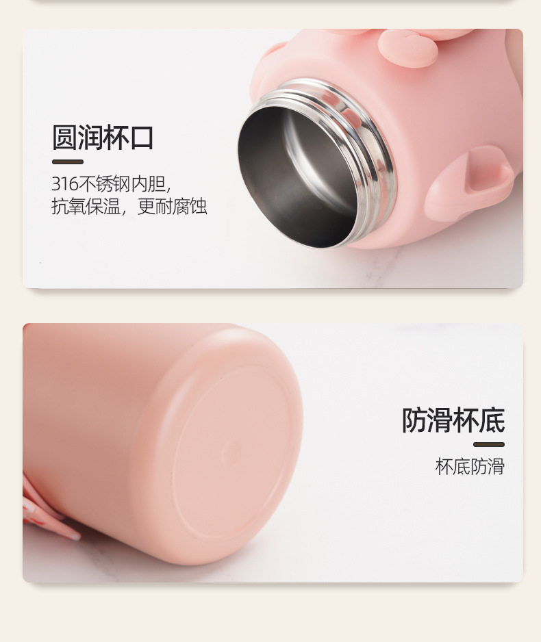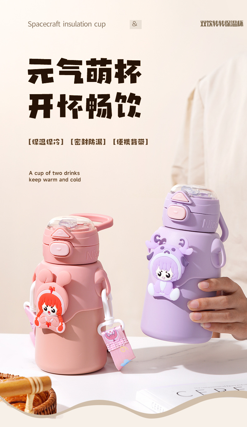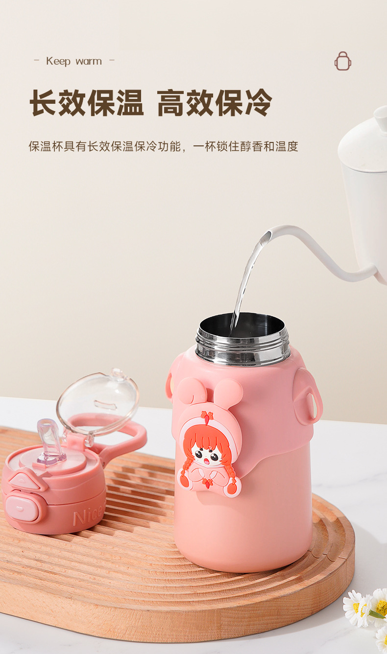 겨울 만화 새로운 어린이 보온병 컵 더블 음주 스테인레스 스틸 남성과 여성의 물 컵 어린이와 학생 귀여운 밀짚 컵