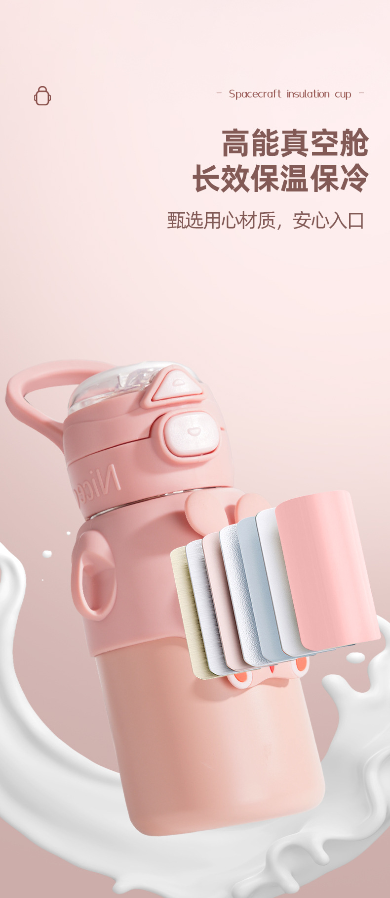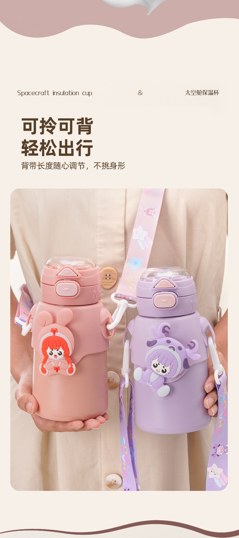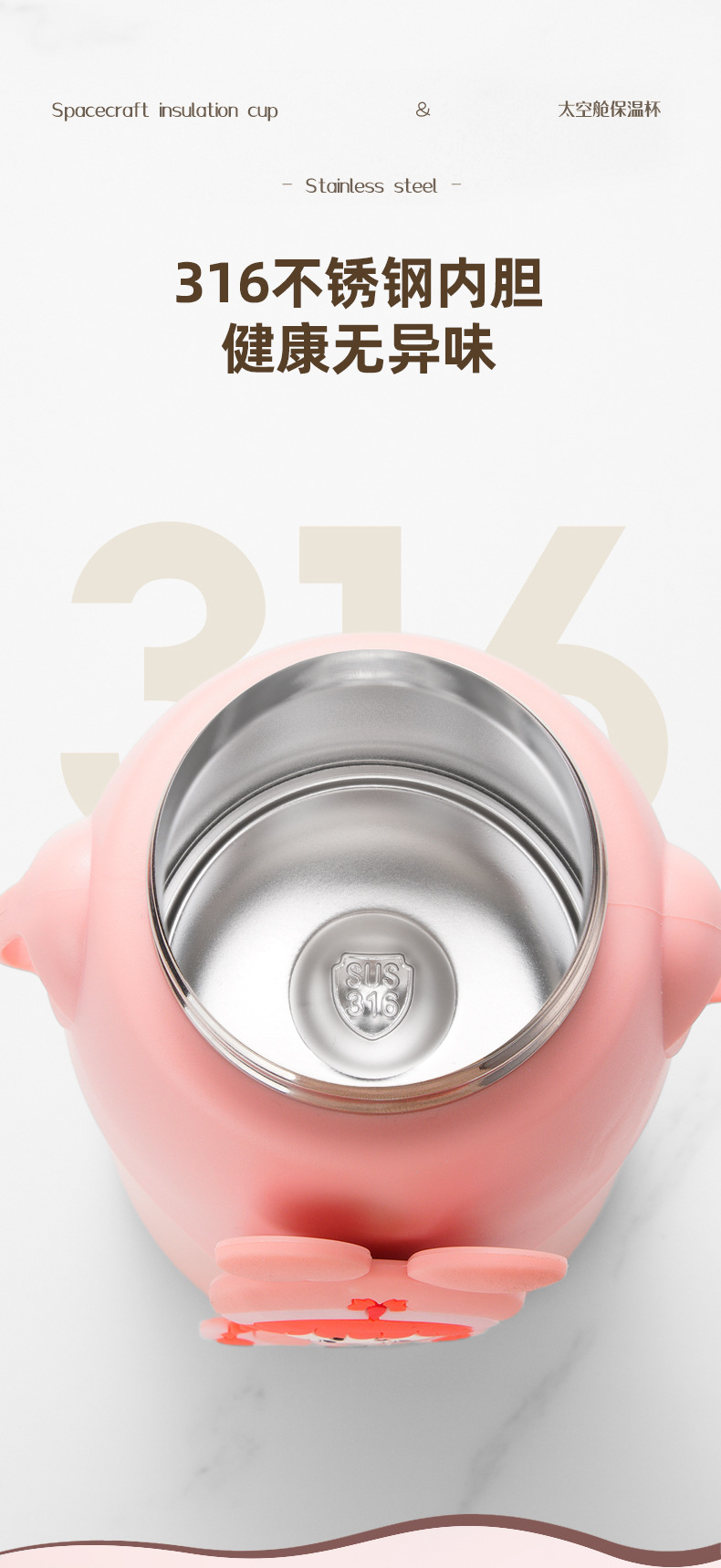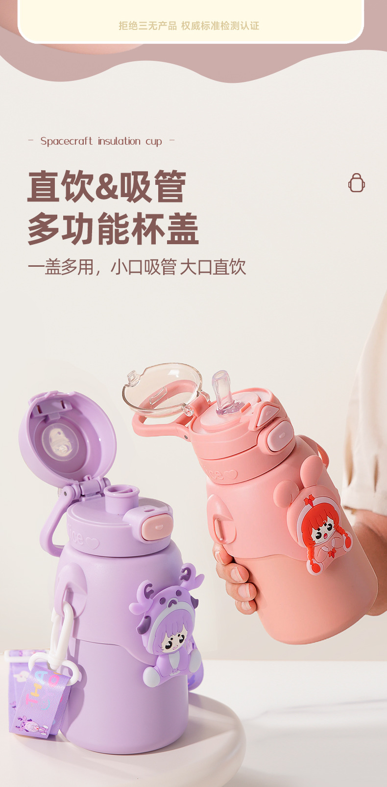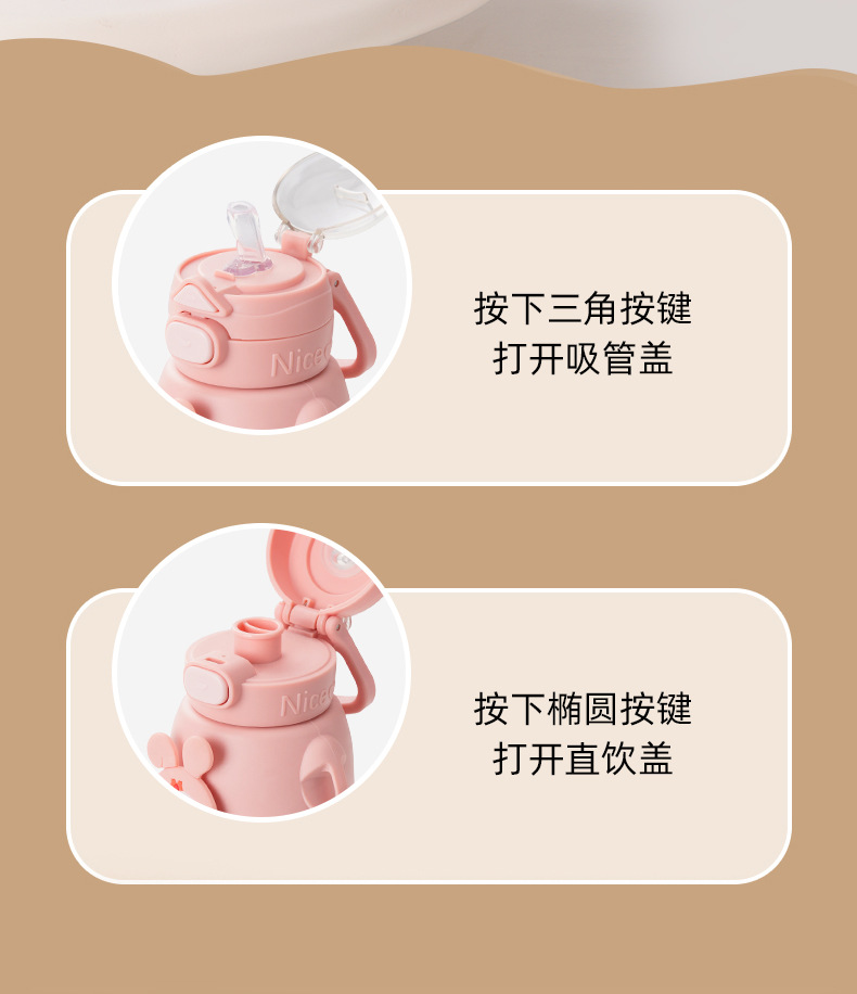 겨울 만화 새로운 어린이 보온병 컵 더블 음주 스테인레스 스틸 남성과 여성의 물 컵 어린이와 학생 귀여운 밀짚 컵