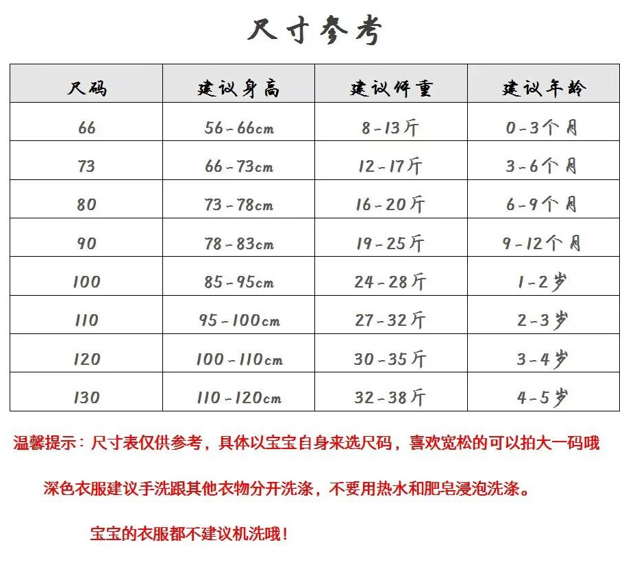 【建议年龄】:适合2T到7Y宝宝穿,建议年龄仅供参考,请以实际尺寸为准
