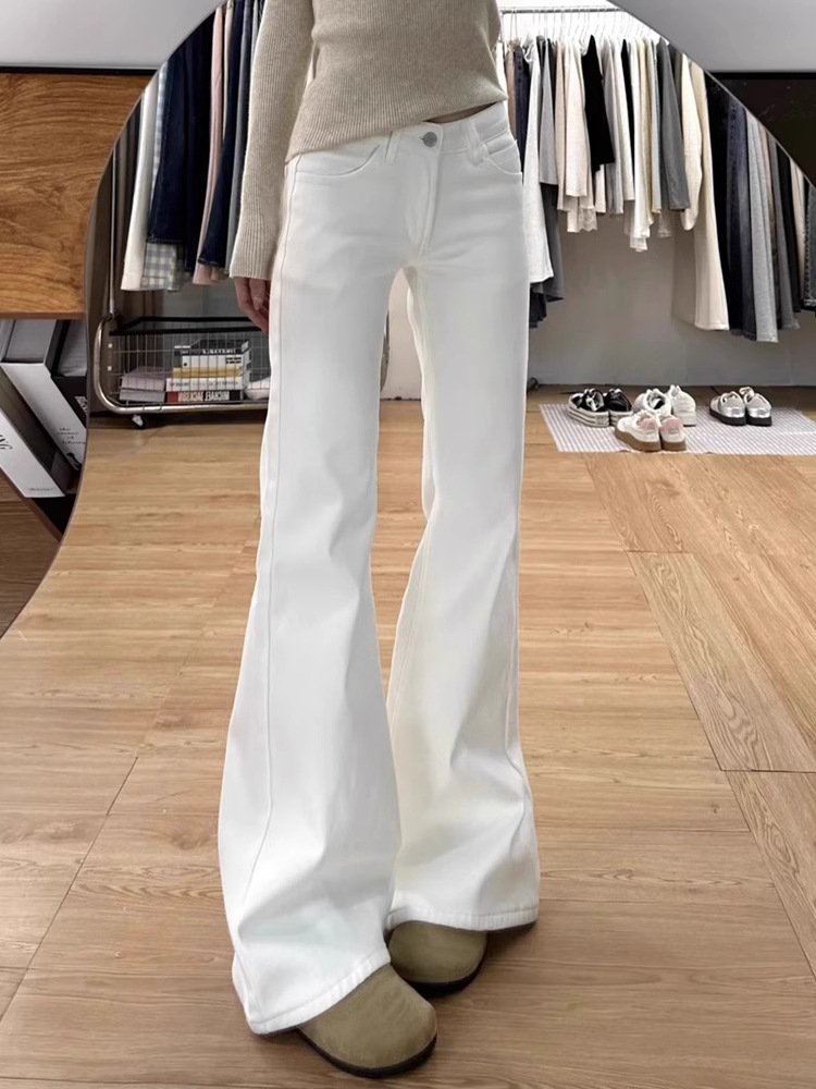뚱뚱한 여성을 위한 화이트 부츠컷 청바지, 플러스 사이즈 봄, 가을 새로운 스타일의 와이드 레그 루즈 슬리밍 플레어 팬츠스토어 가기