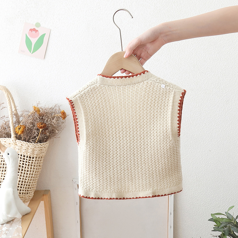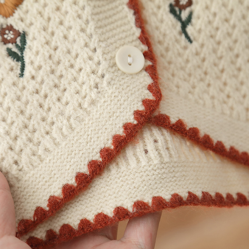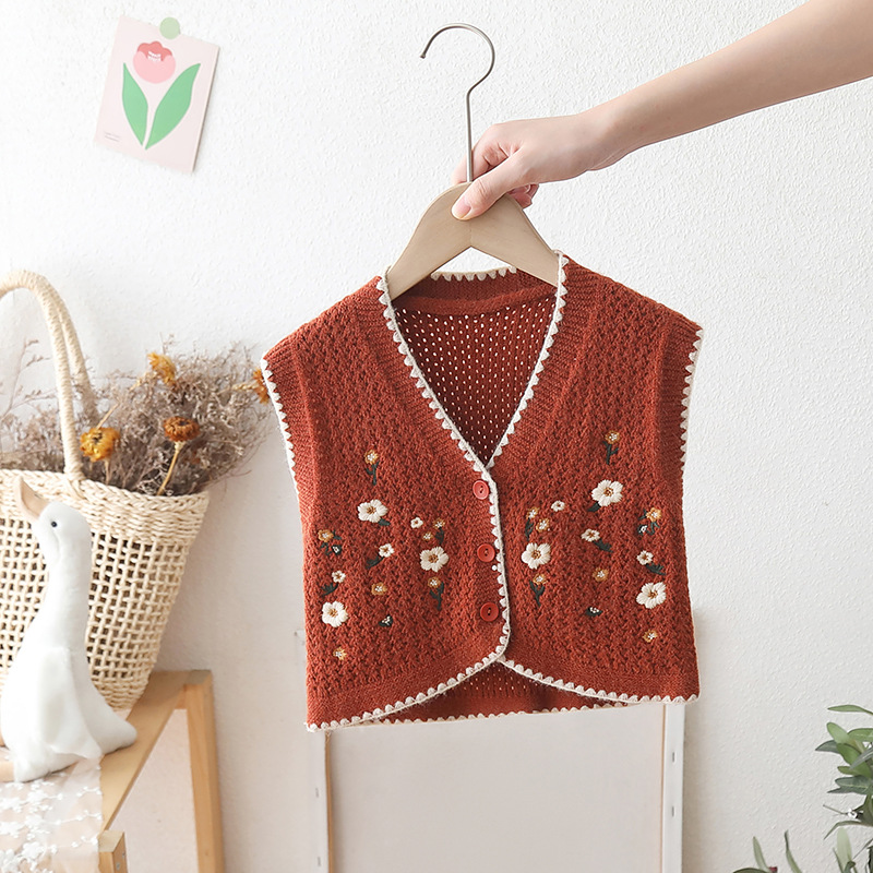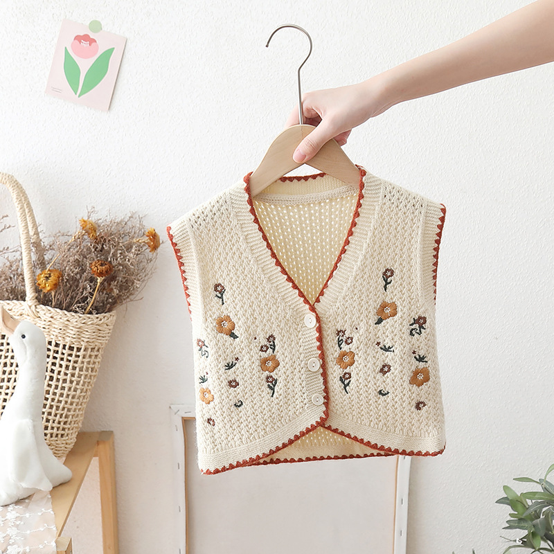 소녀 조끼 스웨터 민족 스타일 2025 봄과 가을 새로운 어린이 조끼 조끼 아기 소녀 니트 조끼 자수스토어 가기
