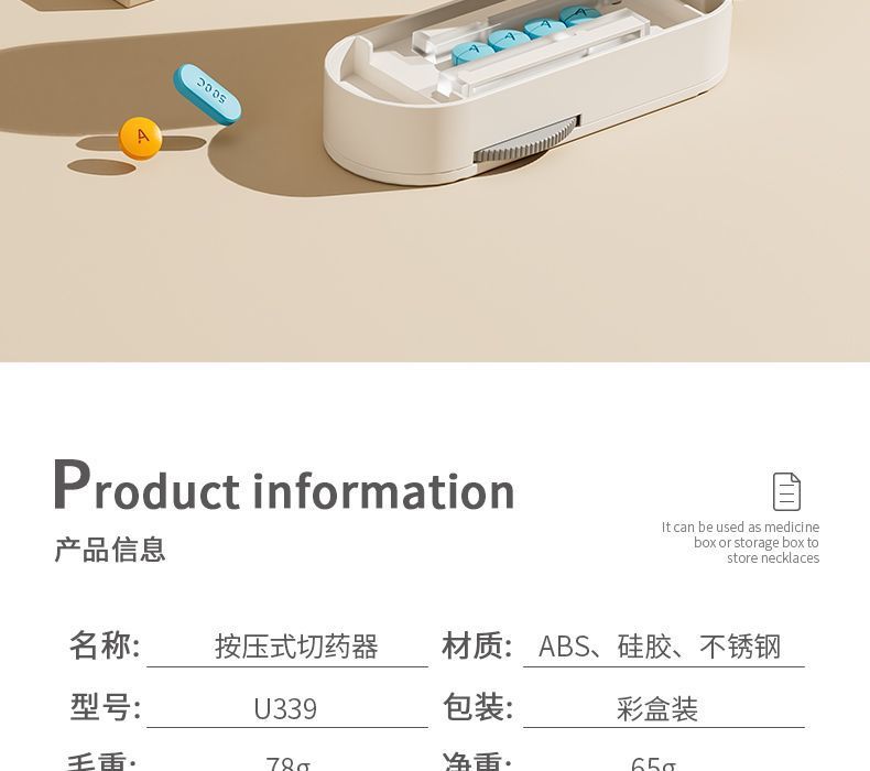 휴대용 약 절단기, 반쪽 약 절단기, 약 상자, 약 정제 절단기, 일본식 4/1스토어 가기
