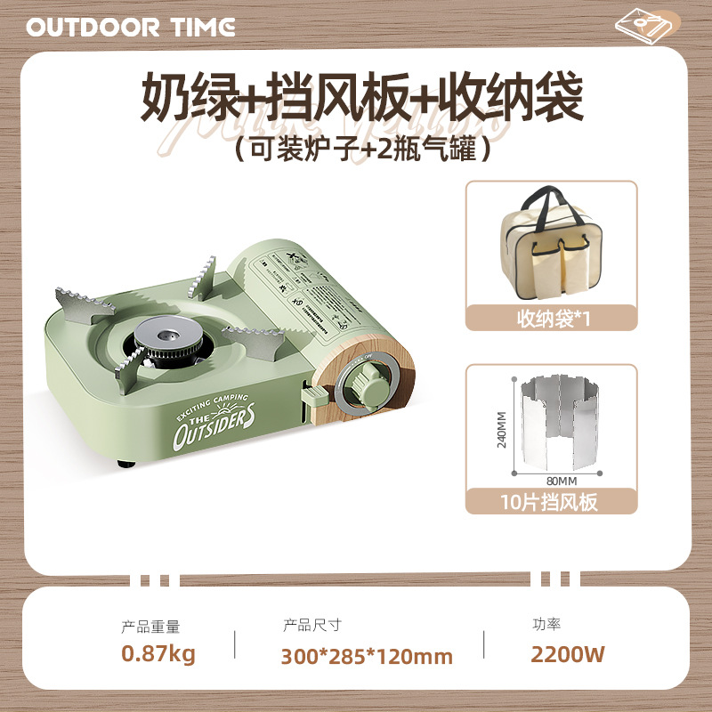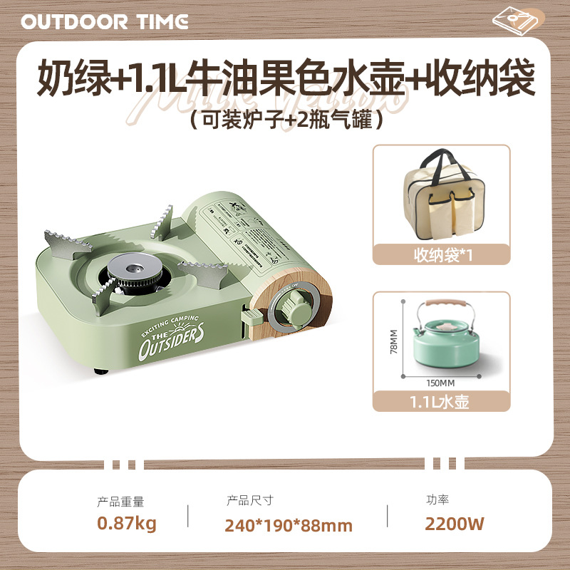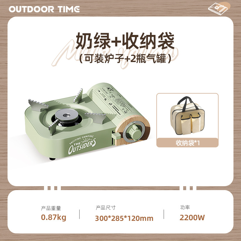 • 밀크 그린 미니 카세트 스토브 + 수납가방 (가스통 2개 수납 가능) ✦