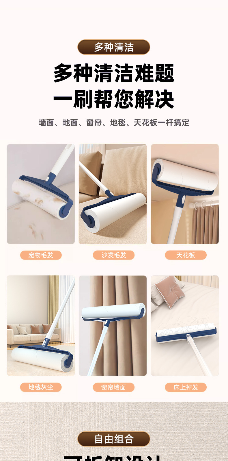 머리카락을 떨어뜨리는 빗자루, 바닥 머리카락 청소, 가정용 바닥 청소, 작은 머리카락 끈끈이 빗자루, 편리한 머리카락 끈끈이 빗자루