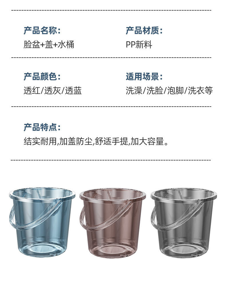 물통, 가정용 물 저장용 두꺼운 플라스틱 물통, 세탁용 휴대용 소형 물통, 원형 물통, 목욕용 물통, 뚜껑이 있는 투명 앉을 수 있음스토어 가기