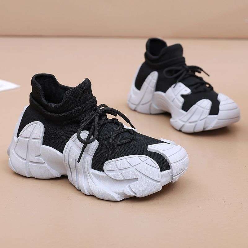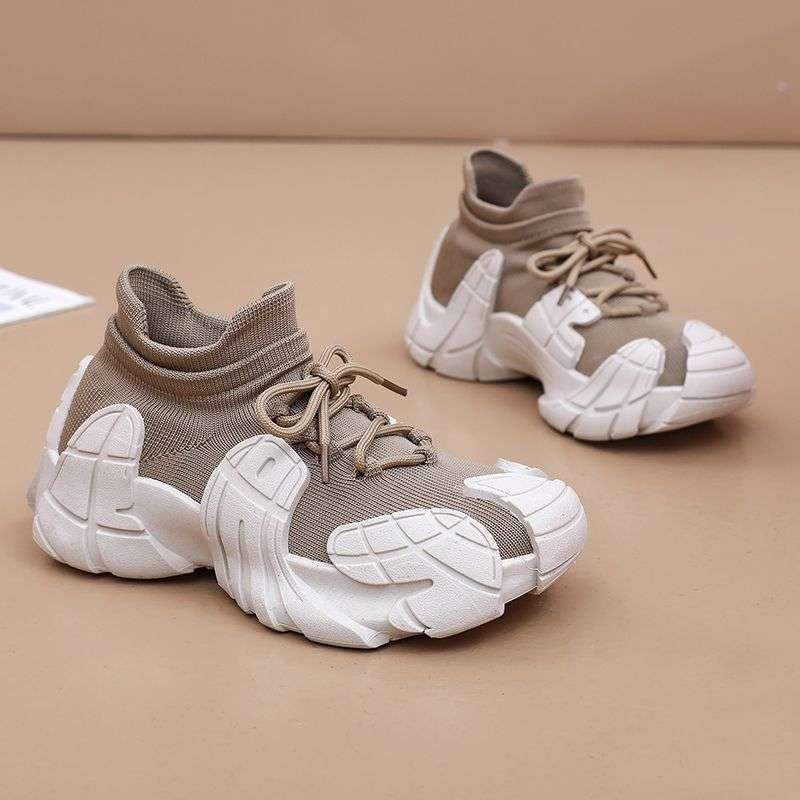 봄 신상품 경량 양말 신발, 편안하고 통기성이 뛰어나며 미끄럼 방지 둥근 발가락 여성 신발, 운동화, 두꺼운 밑창 야외 스포츠 및 레저 신발스토어 가기