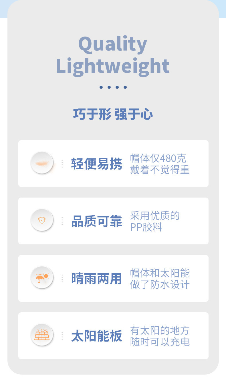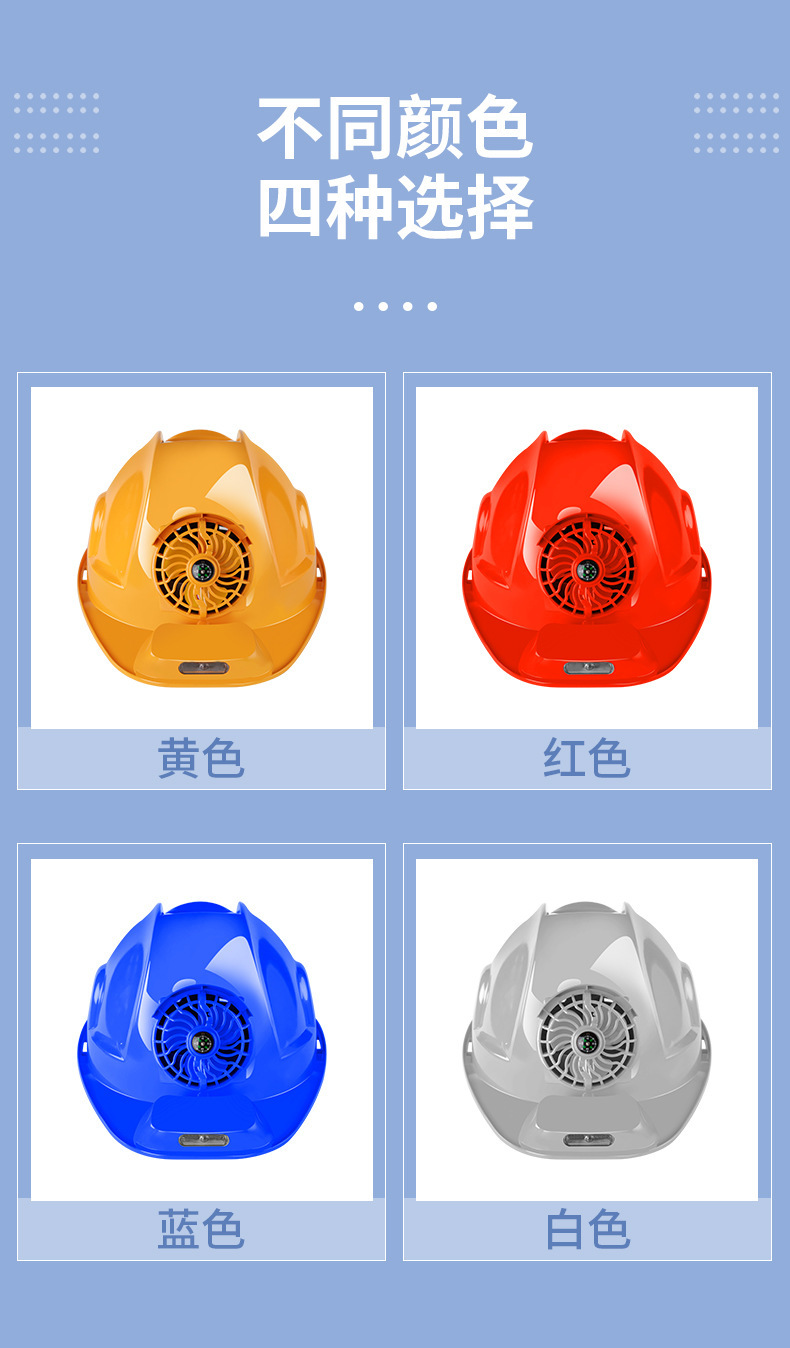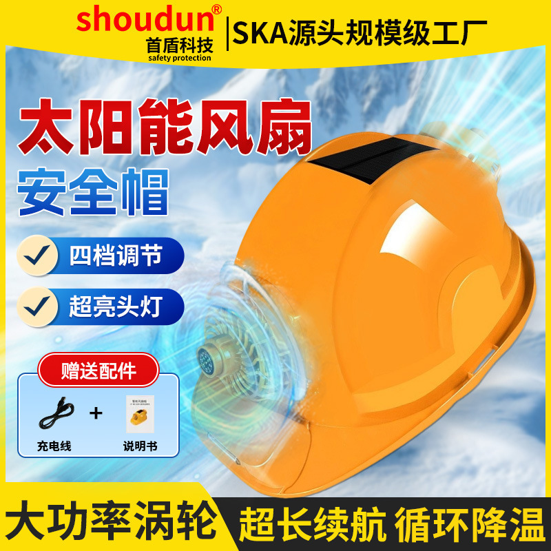 태양광 이중 팬 안전모, 가볍고 다기능, 충전식, 여름용 내장 팬, 건설용 냉각, 조명 포함 헬멧