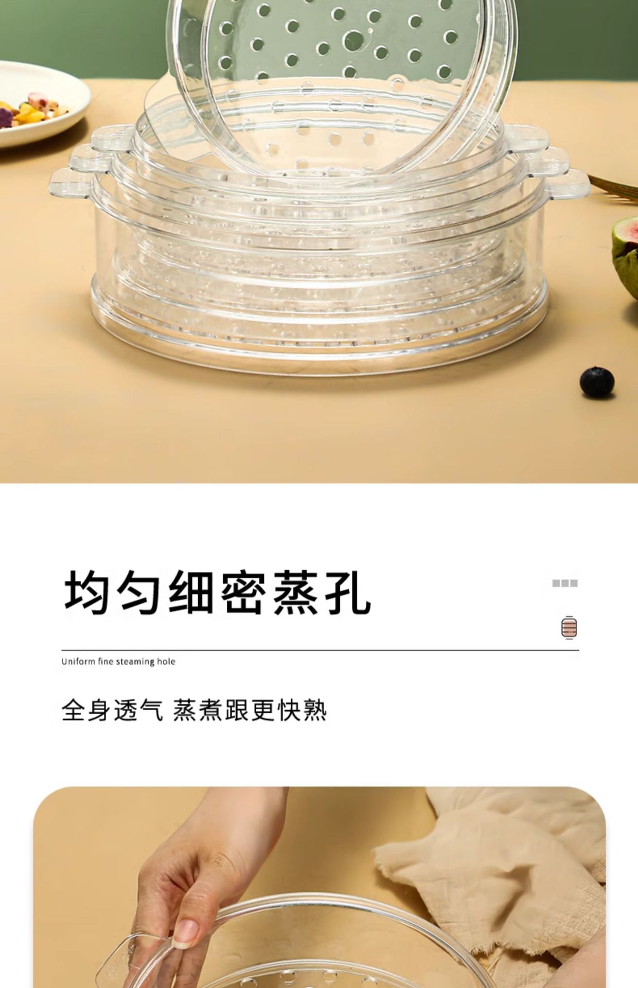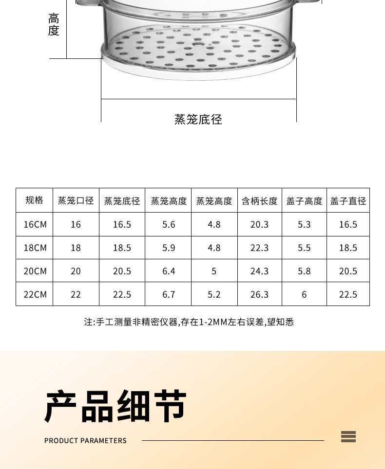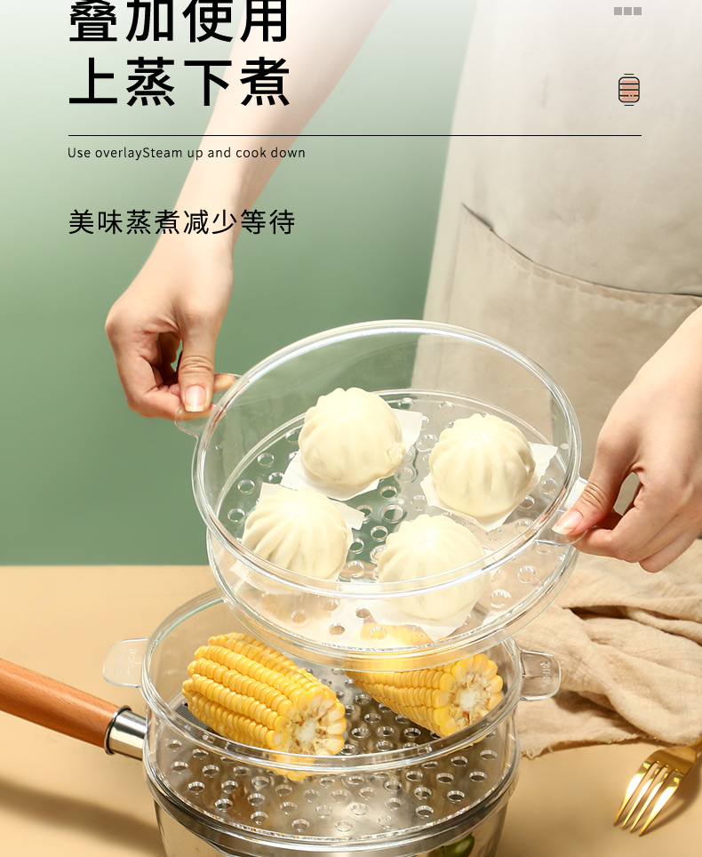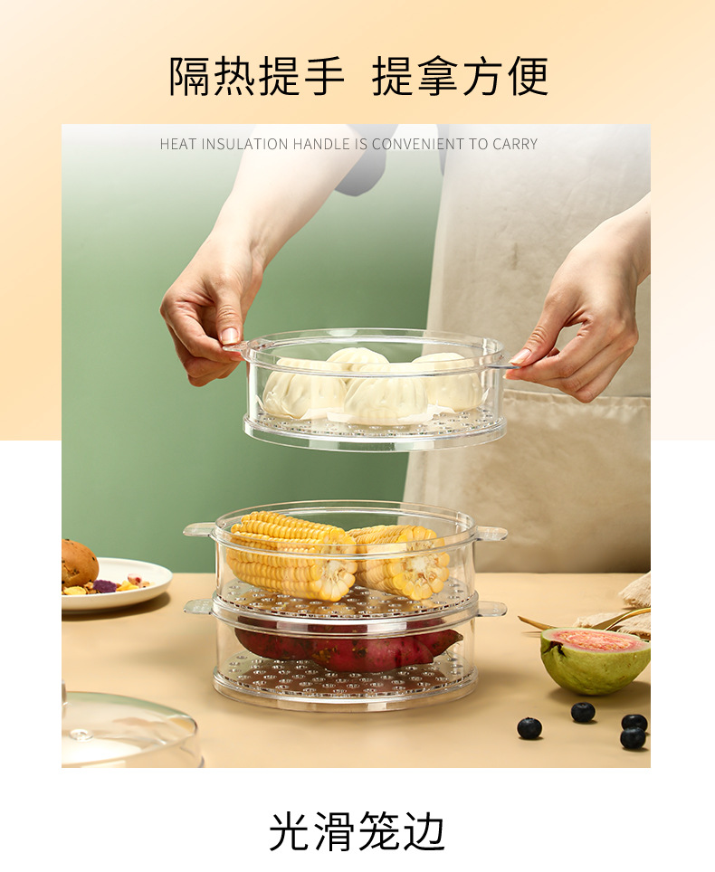 PC 투명 찜 트레이 가정용 작은 냄비 찜빵 찜통 서랍 작은 22cm 플라스틱 뚜껑이 있는 계층형 찜 트레이스토어 가기