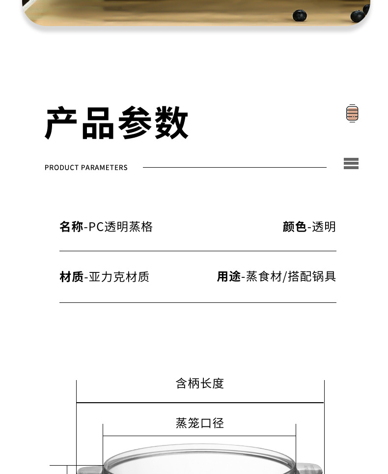 PC 투명 찜 트레이 가정용 작은 냄비 찜빵 찜통 서랍 작은 22cm 플라스틱 뚜껑이 있는 계층형 찜 트레이