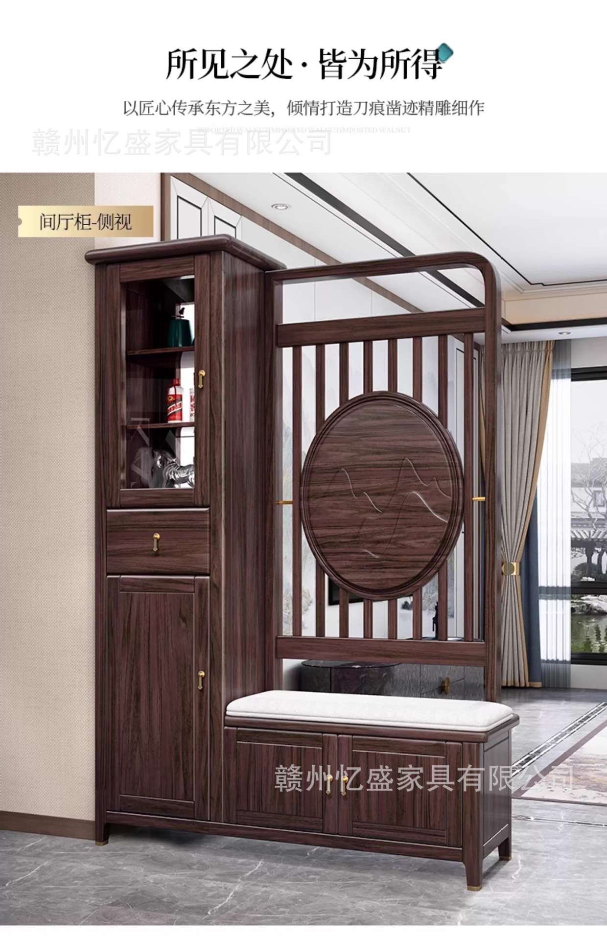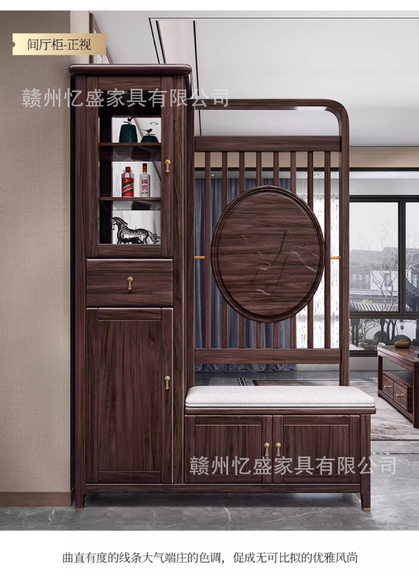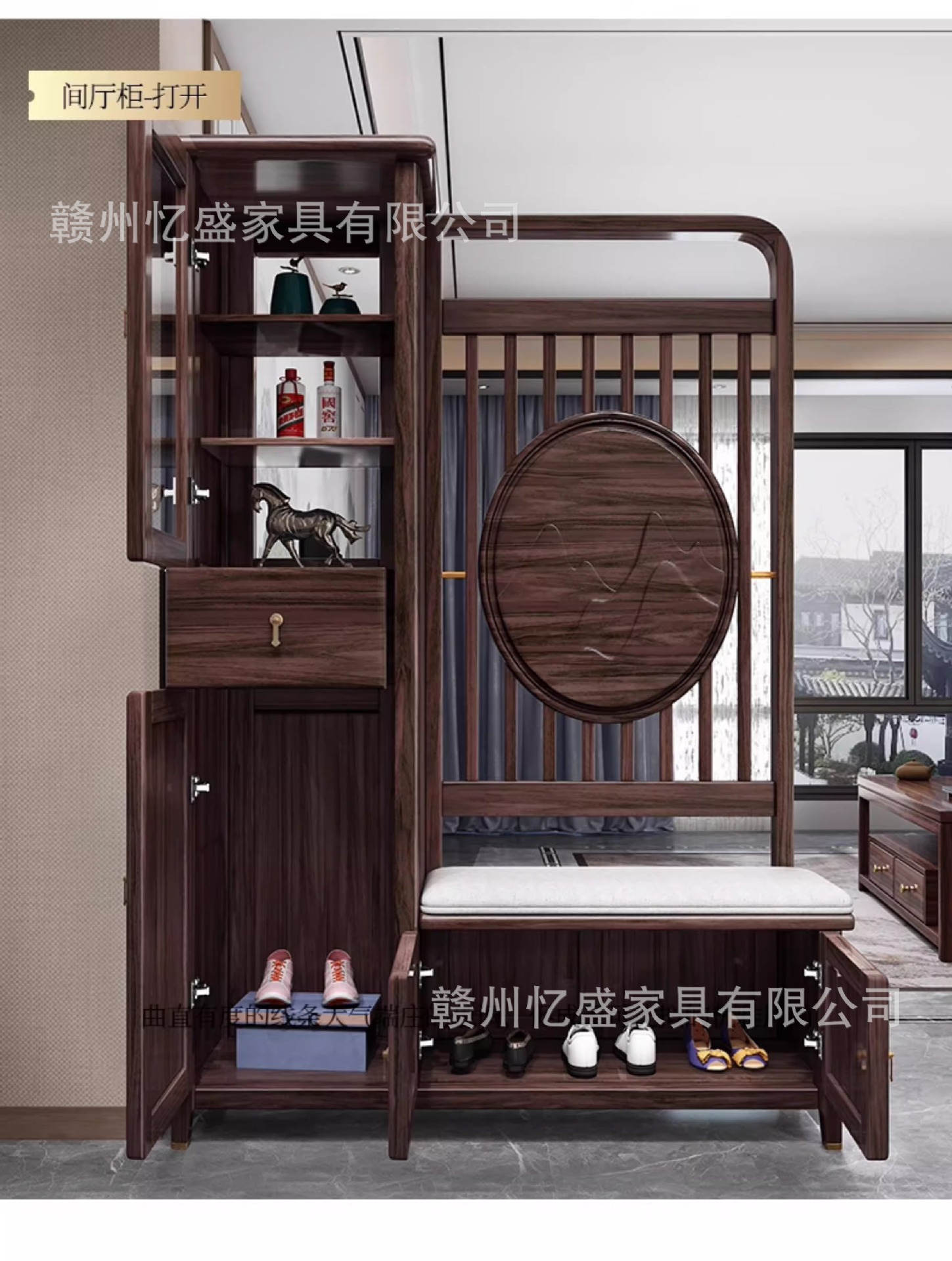 새로운 중국 스타일의 검은색 금색 원목 스크린 파티션, 거실 입구 차단, 현관문, 현관, 신발장 일체형