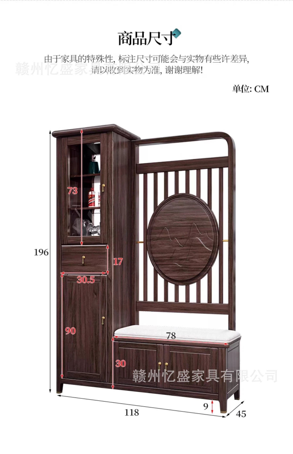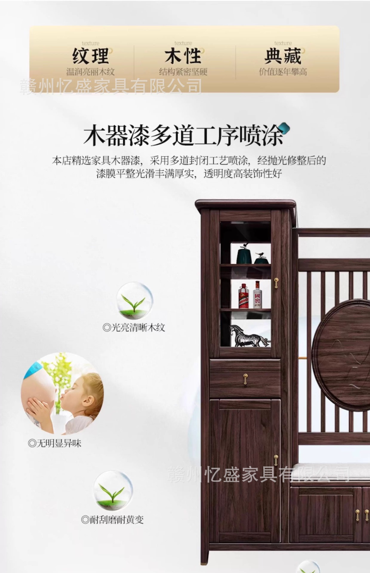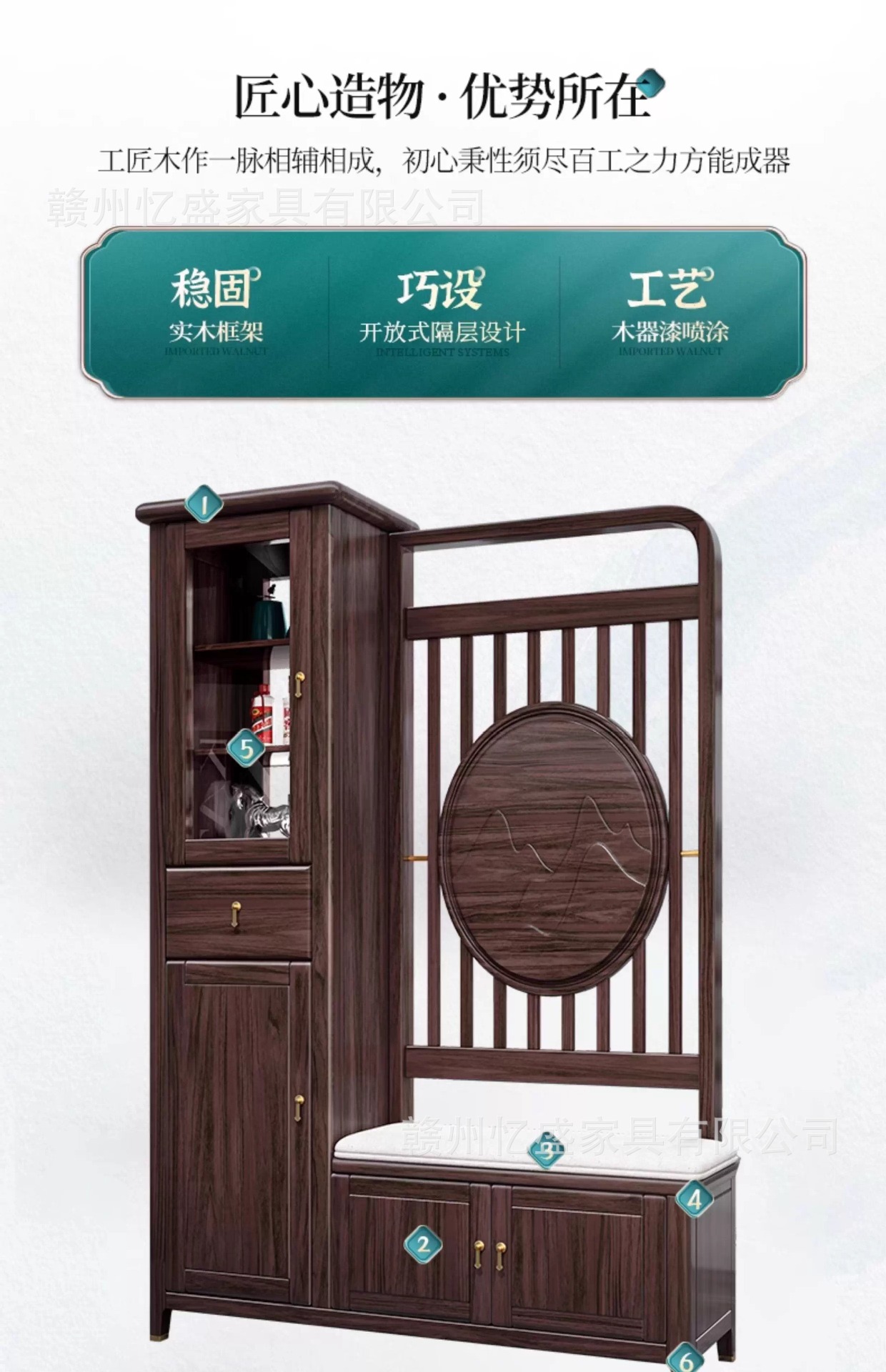 새로운 중국 스타일의 검은색 금색 원목 스크린 파티션, 거실 입구 차단, 현관문, 현관, 신발장 일체형