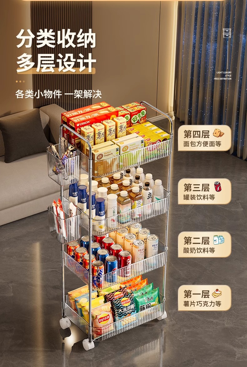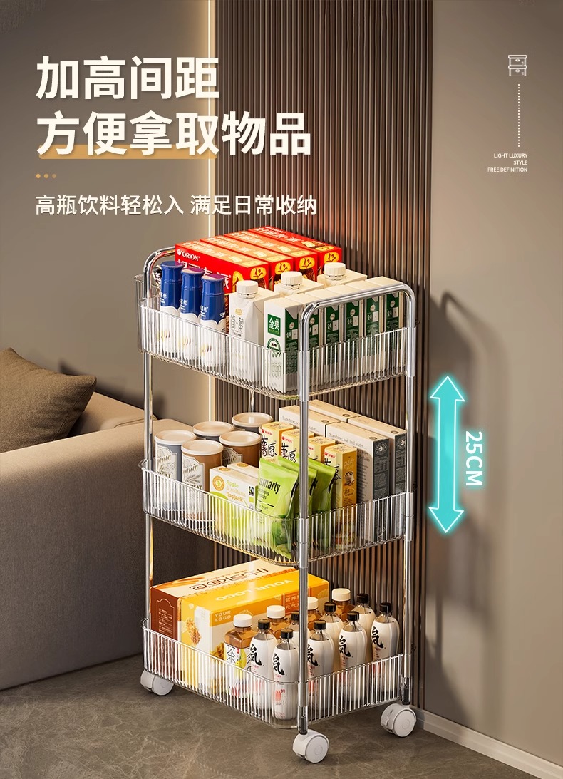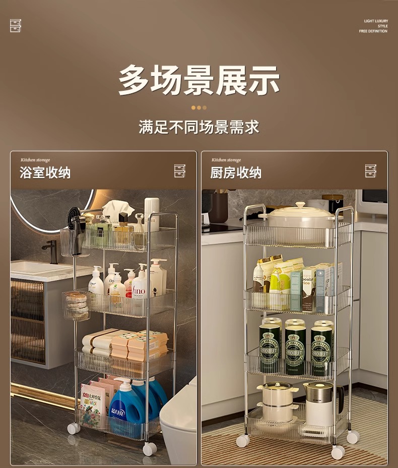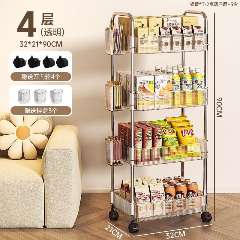 아크릴 스낵 트롤리 보관함 바닥 스탠딩 모바일 욕실 화장실 보관함 다층 화장품 캐비닛