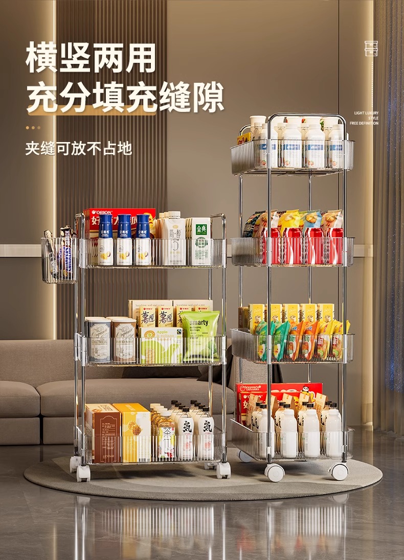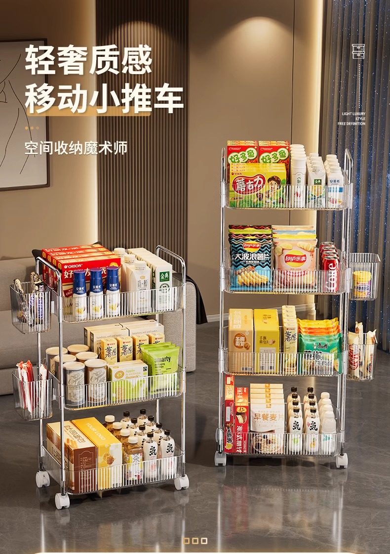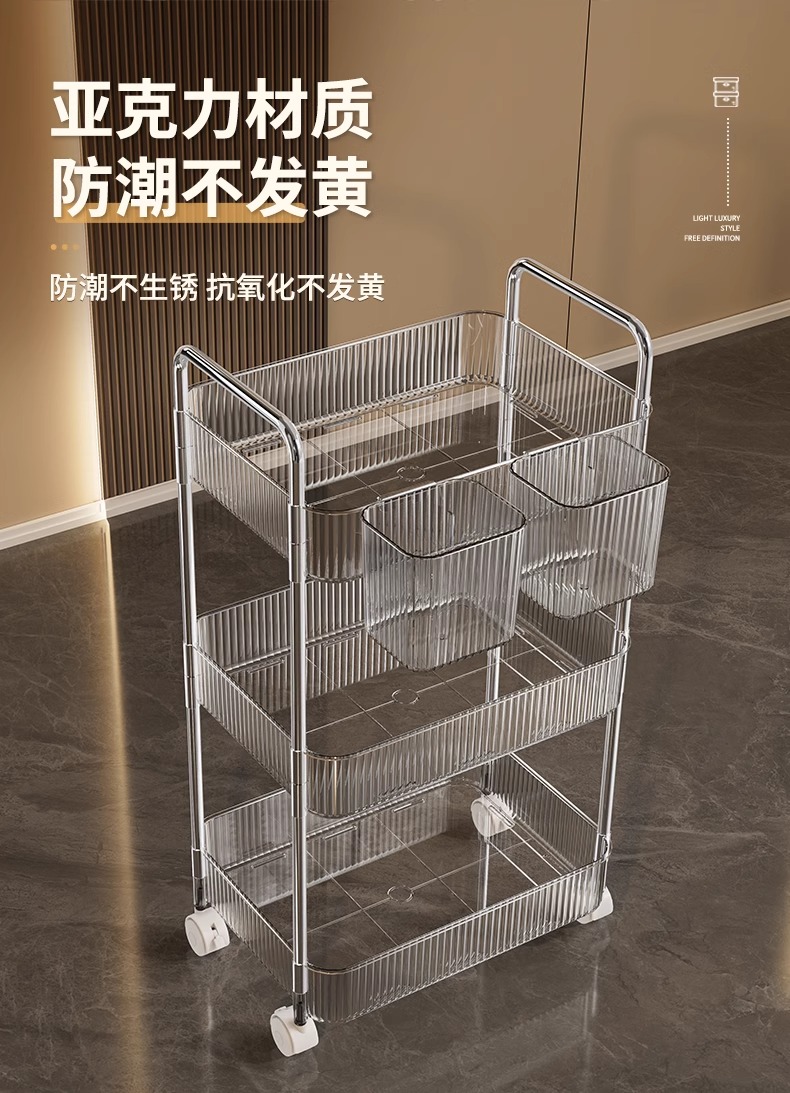 아크릴 스낵 트롤리 보관함 바닥 스탠딩 모바일 욕실 화장실 보관함 다층 화장품 캐비닛스토어 가기
