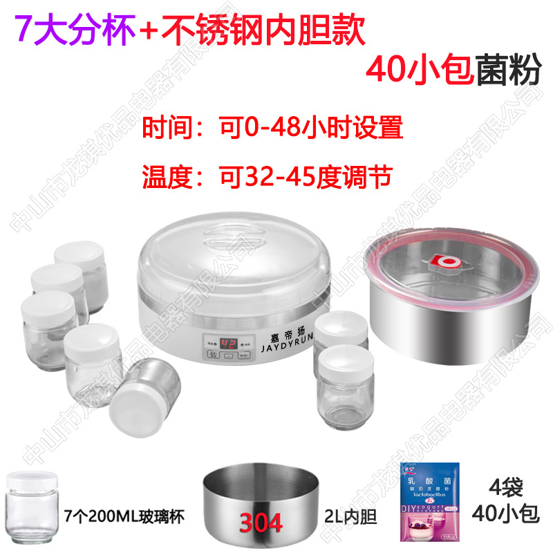 요구르트 기계 대용량 2 리터 가정용 완전 자동 수제 요구르트 발효 기계 유리 컵 304 라이너
