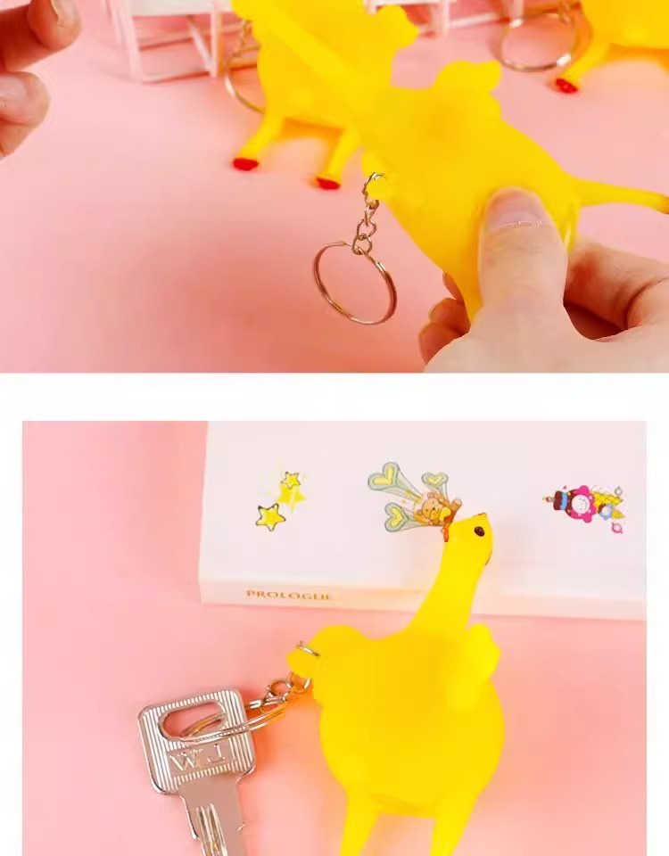 알을 낳는 작은 노란색 닭 키 체인 크리 에이 티브 릴리스 스트레스 재미 있은 열쇠 고리 펜던트 암탉 어린이 선물 학교 가방